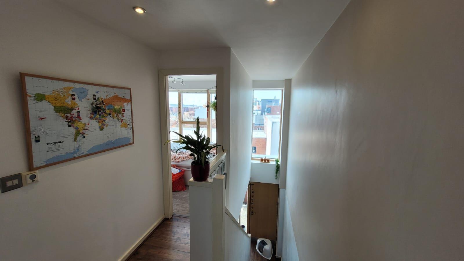 Hallway - Entrace door, staircase to first floor, laminate flooring, under stairs storage