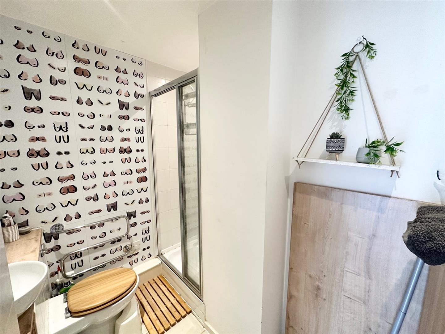 Bathroom - Fully tiled walls and Floor, bathroom comprises of bath with shower over, low level w.c. and sink, walk in storage cupboard housing washing machine