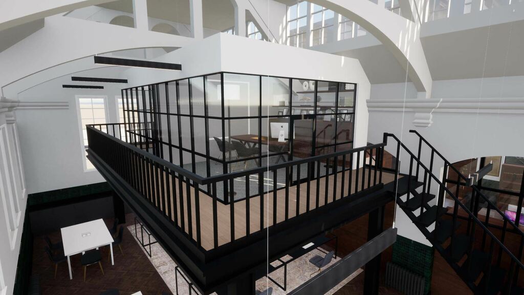 As well as restoring many of the buildings existing architectural features, the space will incorporate a free- standing steel framed staircase and mezzanine floor with a distinctive heritage aesthetic. The ground floor area will be open plan with side kitchenette and washrooms, whilst the first floor will incorporate glazed office and break out spaces.