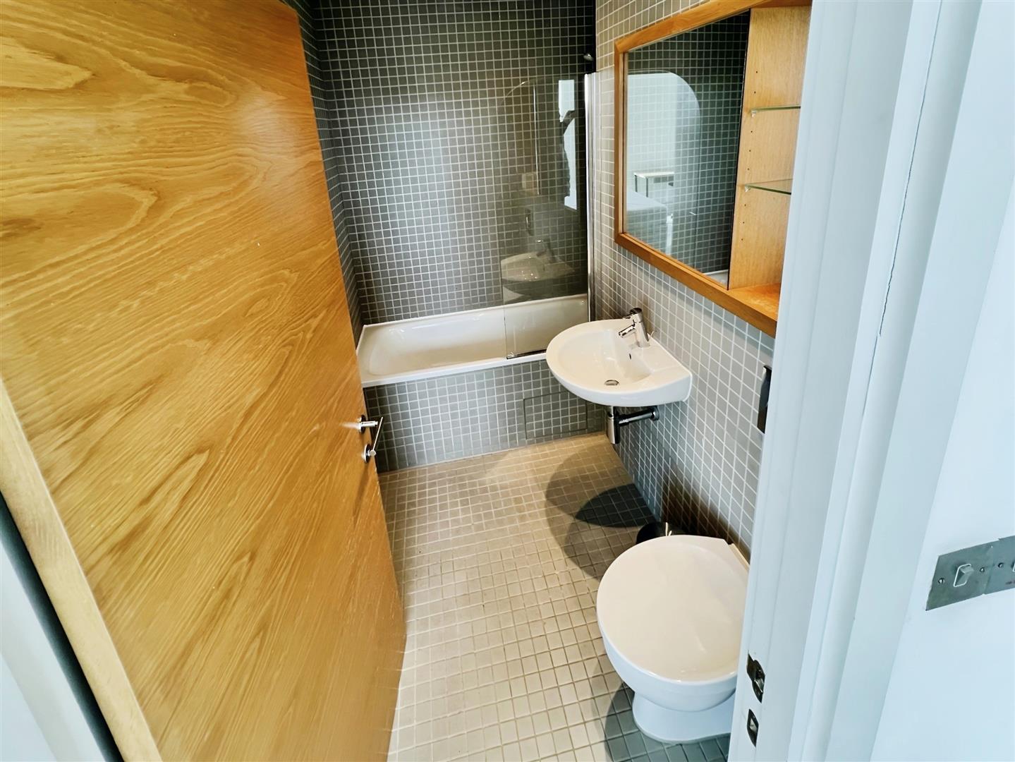 Bathroom - Fully tiled walls and flooring wc sink bath with shower over