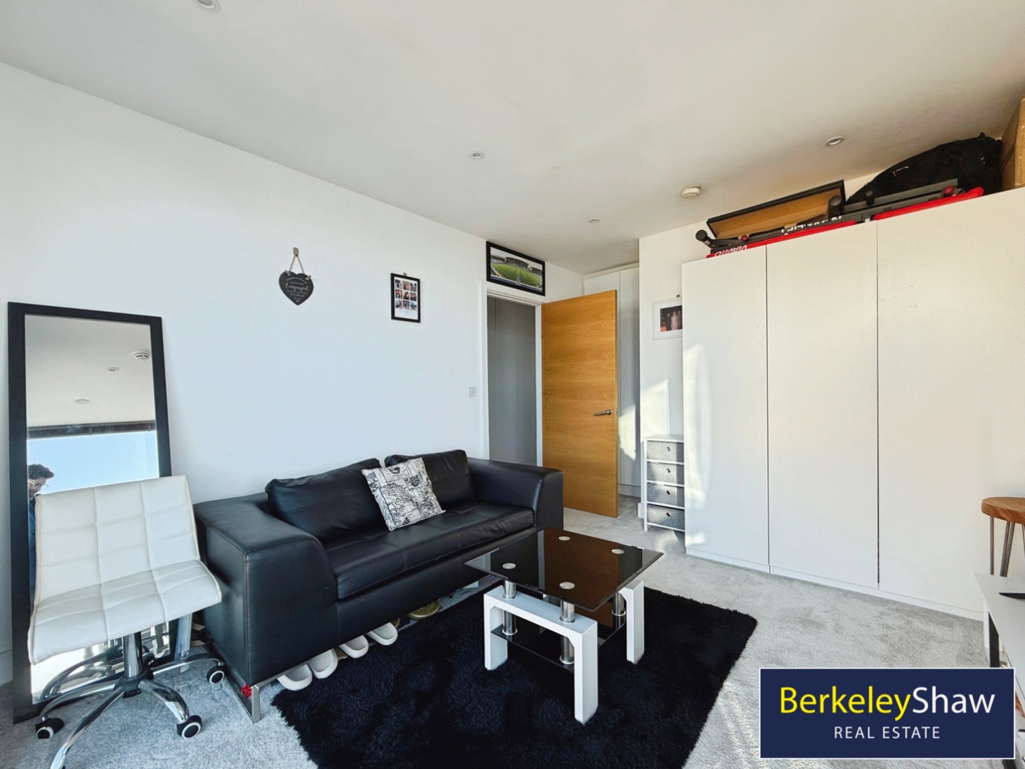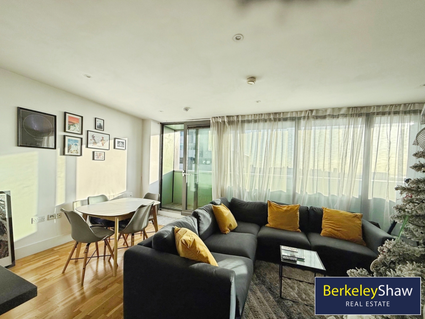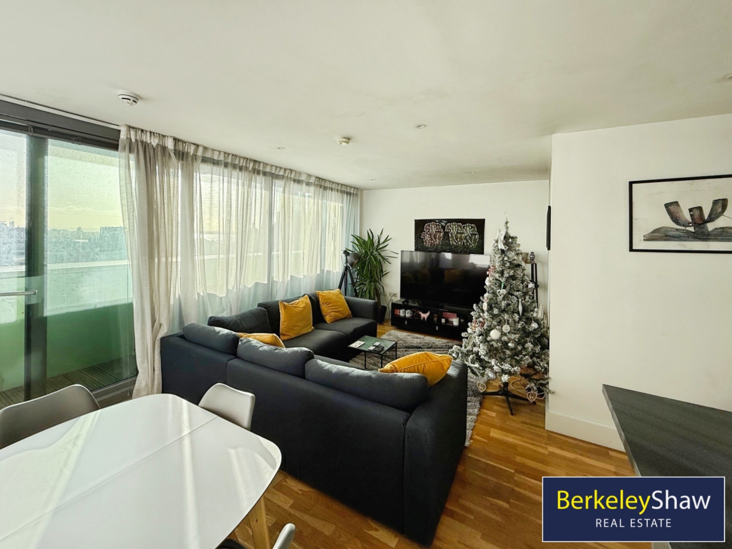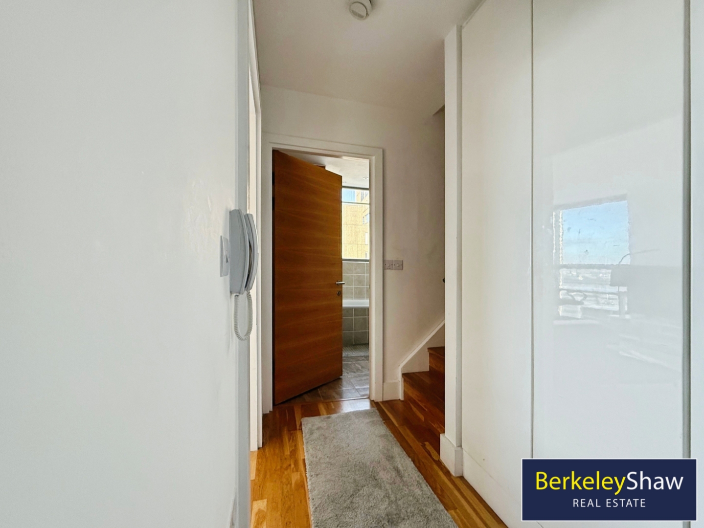 Set across two floors, the open-plan reception room features large windows that maximise natural light and frame the city skyline, flowing into an open-plan kitchen with kitchen island and good natural light - ideal for everyday living and entertaining.