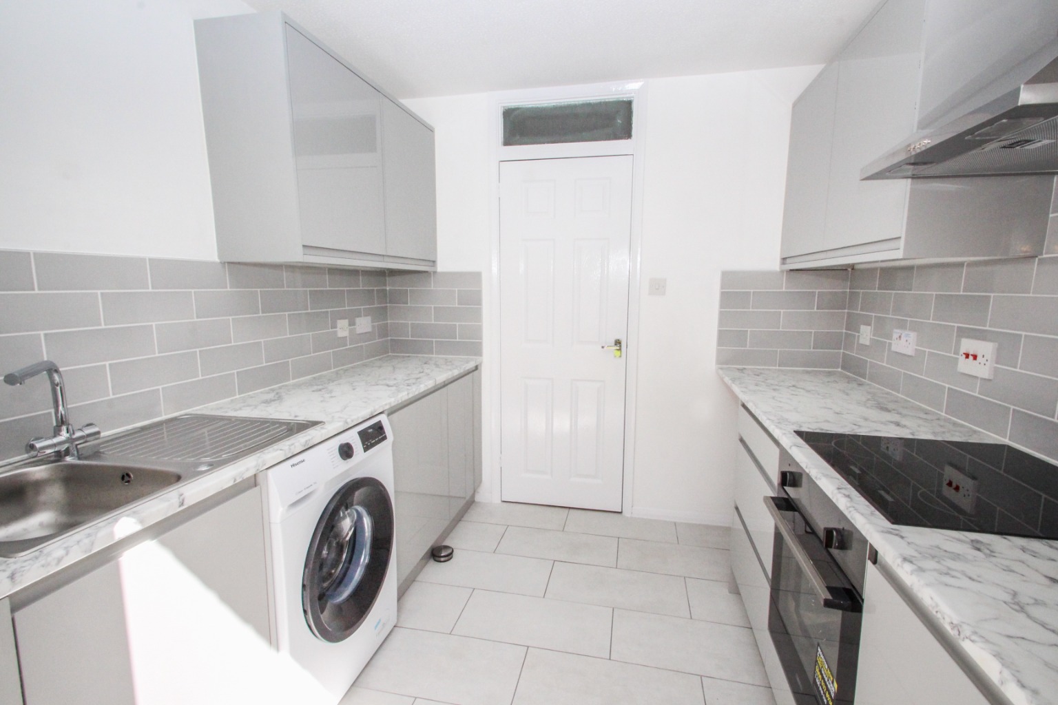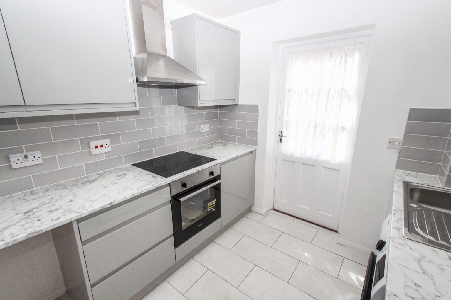 To the rear, the newly equipped kitchen has modern appliances with a stylish finish, providing ideal space to enjoy preparing any meal. From the kitchen a door leads out to a lawned area perfect for those warmer days should you want to sit out and enjoy some sun.