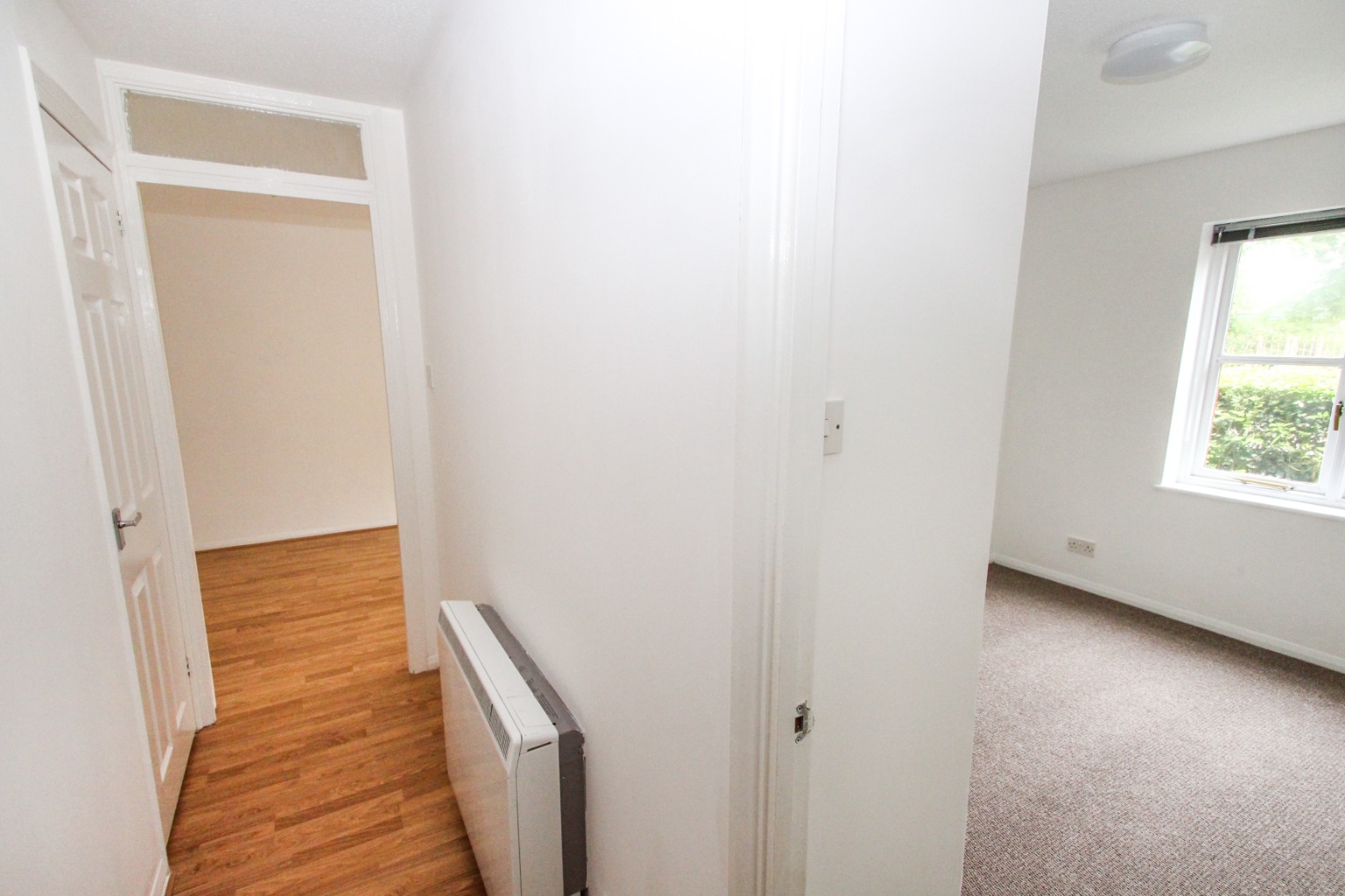 The hallway has wood effect flooring which continues in underfoot into the good size reception room, which is filled with plenty of natural light.