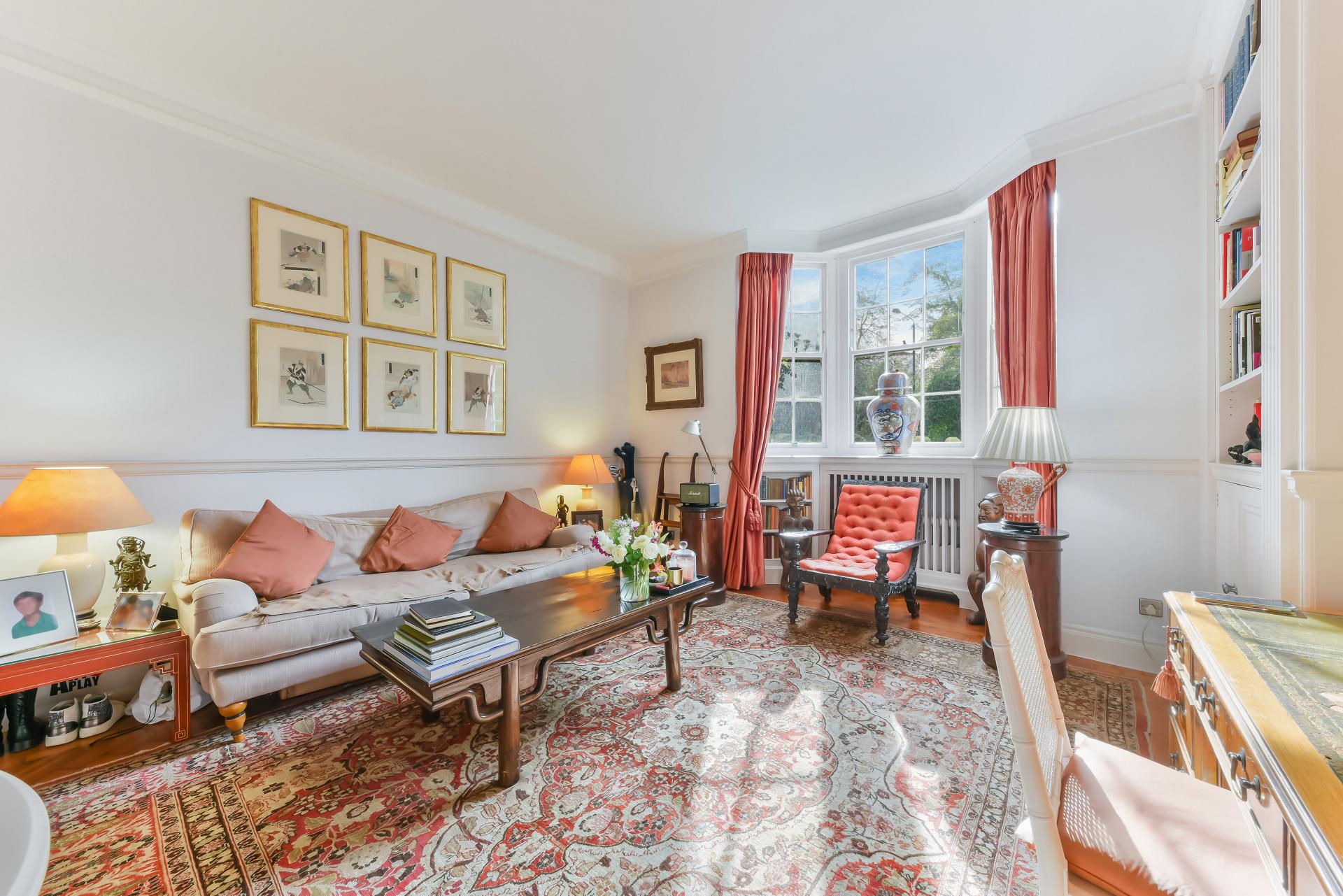 Overlooking the meticulously maintained communal gardens, the flat offers a peaceful, green outlook. Beyond this, residents enjoy exclusive access to the prestigious private gardens of Ladbroke Square, a hidden gem in the heart of Notting Hill. This expansive green space is one of the largest private gardens in London, offering a tranquil retreat with beautifully landscaped grounds, winding paths, and an array of seasonal plants and flowers—a rare luxury in the city.