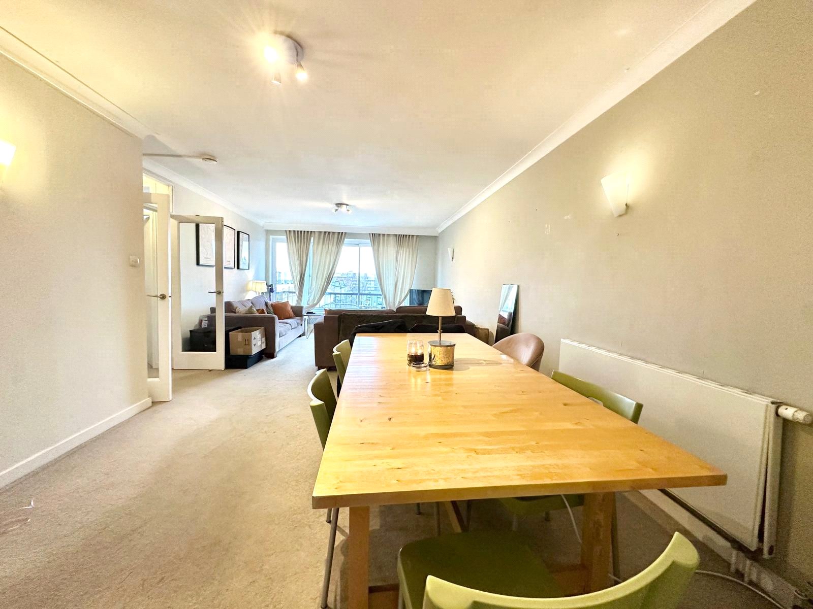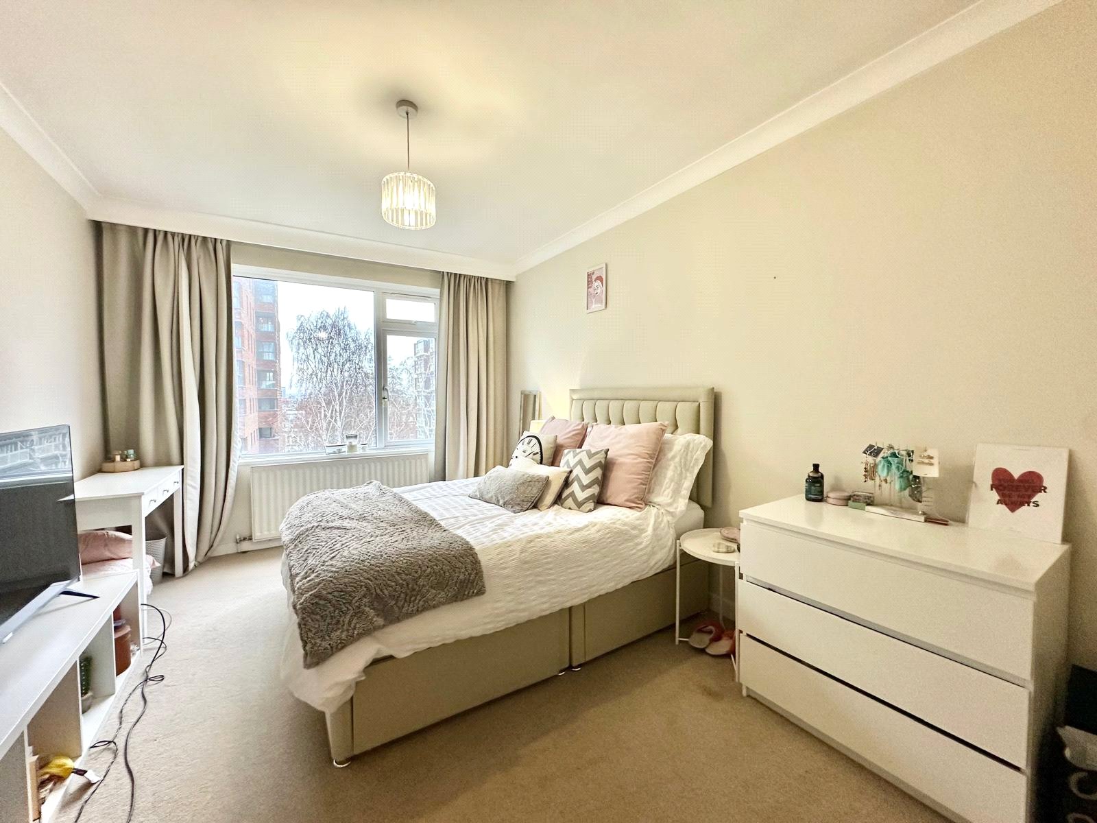 The apartment offers generous accommodation throughout, beginning with a bright and expansive double reception room, flooded with natural light and providing direct access to a private south-facing balcony. The stylish, modern fitted kitchen has been designed to offering ample space. Residents benefit from a contemporary family bathroom, complete with a bath and separate shower cubicle, and an additional shower room with toilet.