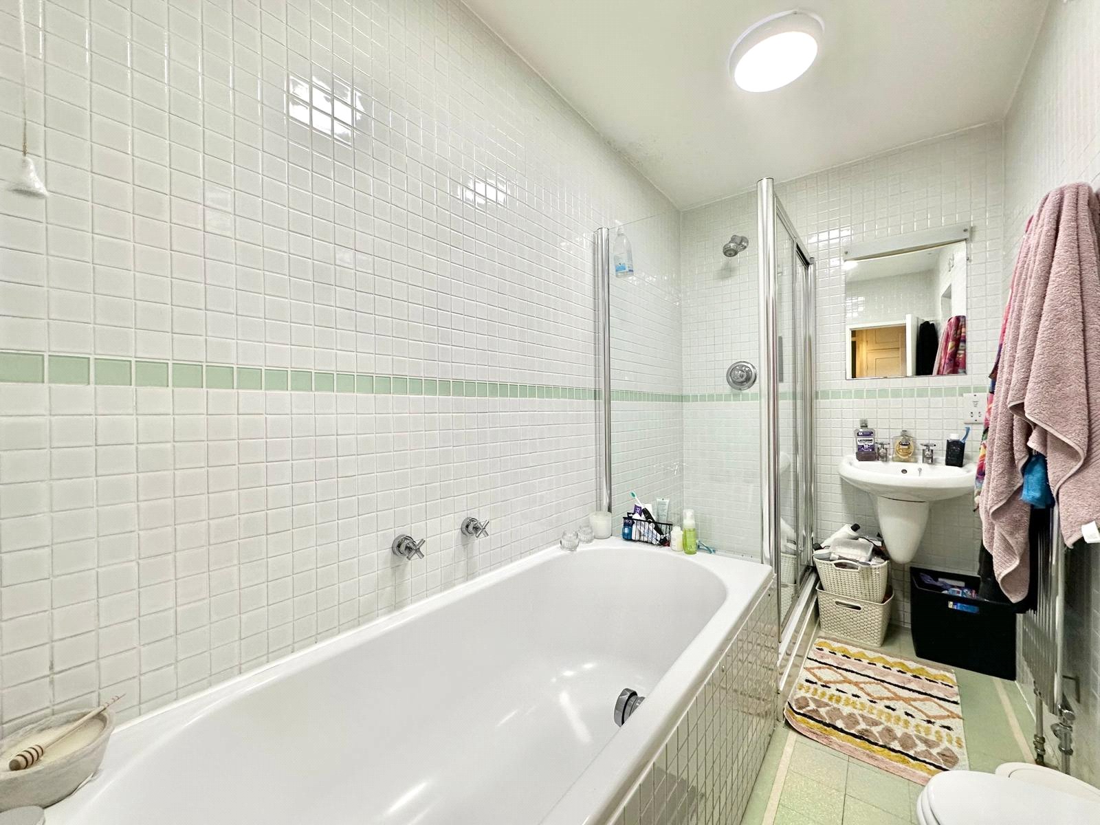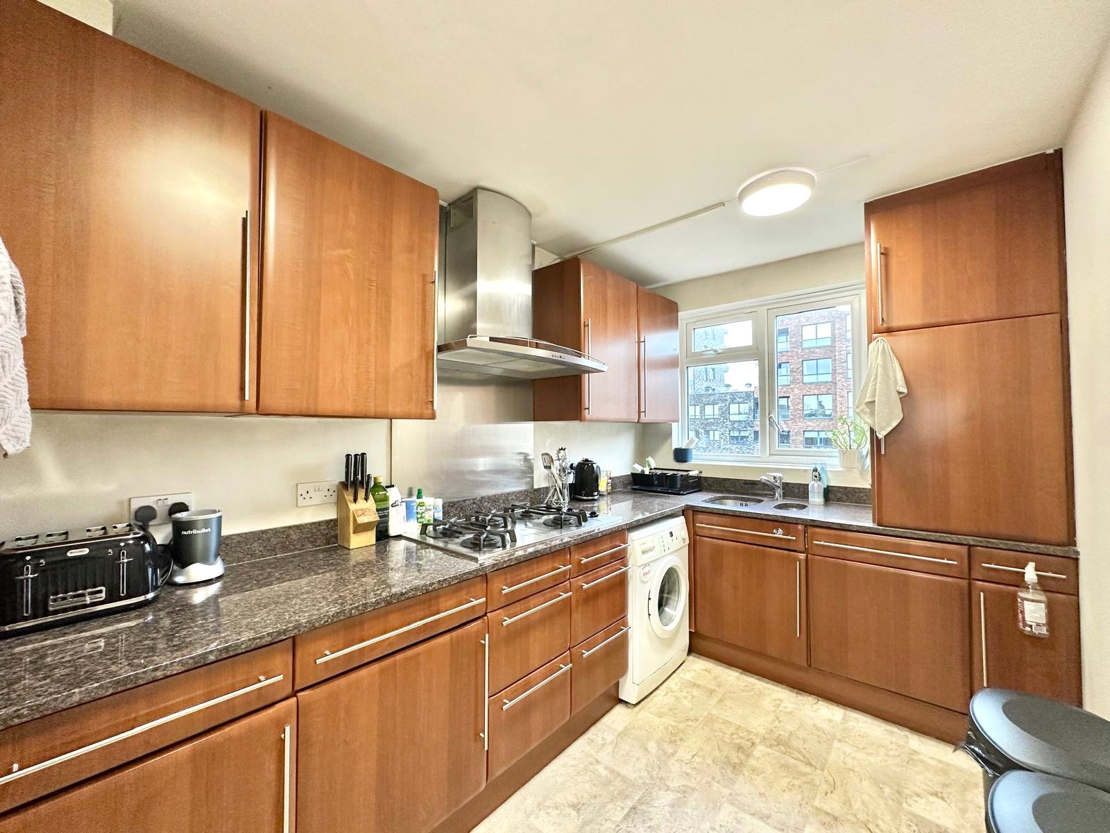 All three double bedrooms are well-proportioned and feature excellent storage, making the property ideal for families or professional sharers. The development itself boasts outstanding communal facilities, including a lift, guest parking, and a spacious roof terrace offering panoramic views over Putney’s leafy surrounds. Parking is available via a permit from the local council.