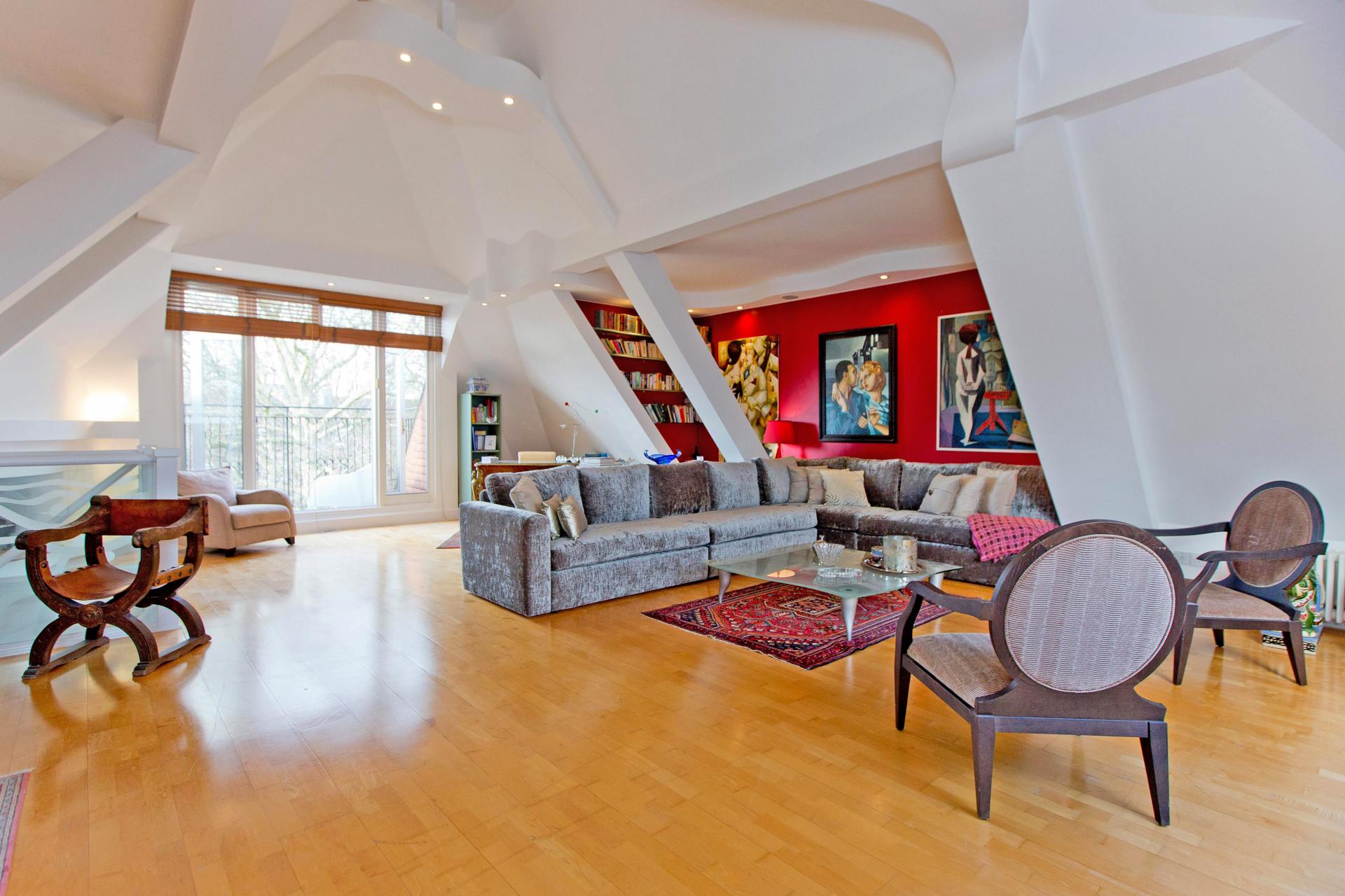 - Stunning vaulted reception to upper level with terrace