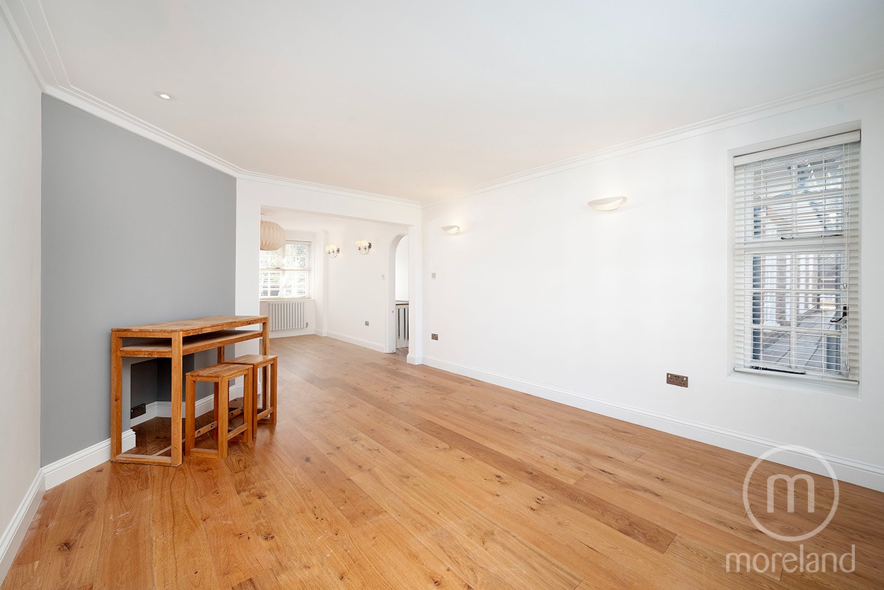 The property boasts three floors, which offers three double bedrooms, two bathrooms, two reception rooms, a spacious kitchen and a lovely communal courtyard and a private front garden.