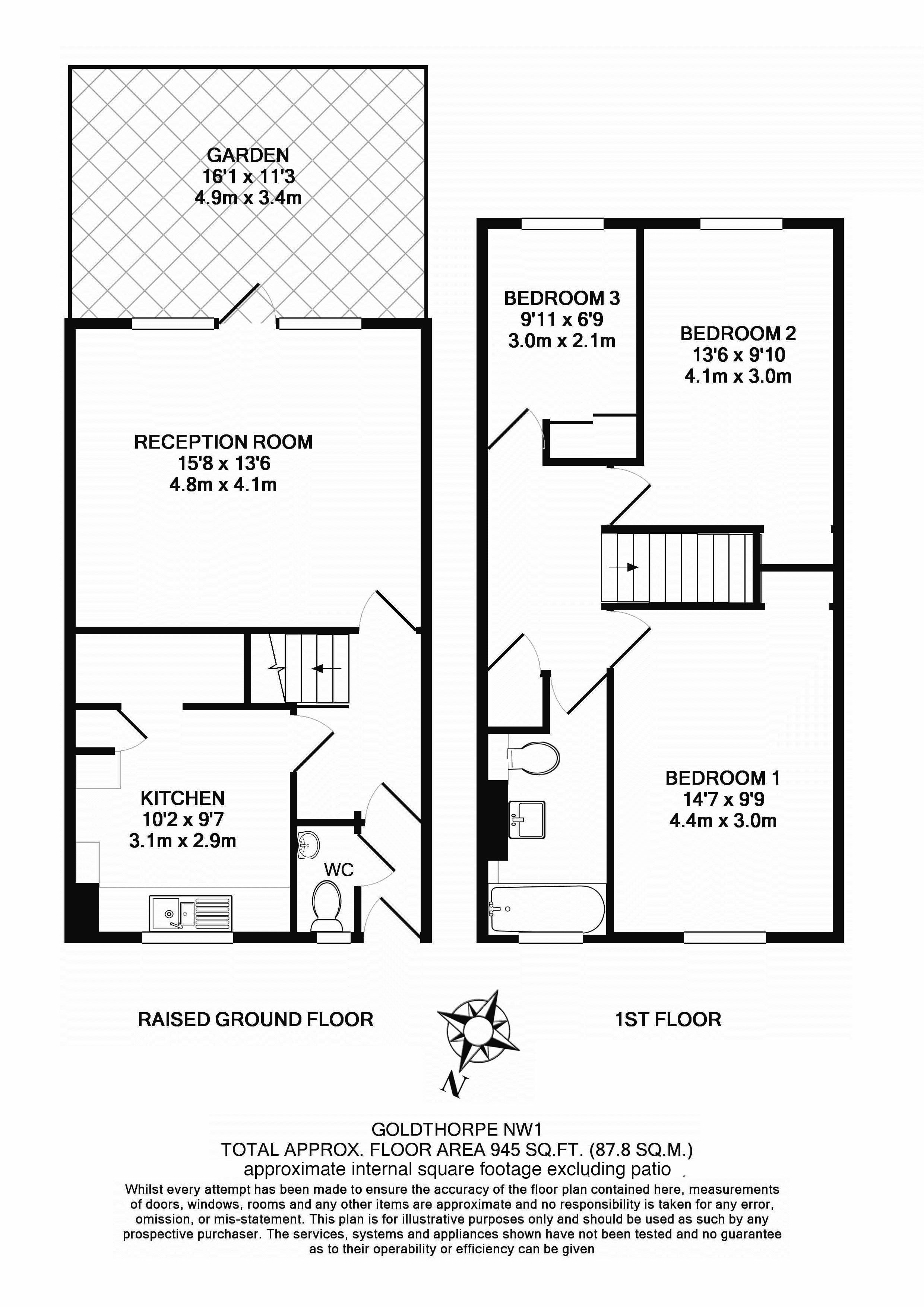 Lovely three double bedroom spacious and newly decorated duplex apartment with a floor area measuring approximately 945 sq ft (87.8 sq m). The flat, located over the raised ground and first floor of a purpose built block comprises: a large reception room with parquet flooring and door leading to a private patio, guest wc and a separate eat in kitchen, whilst the upper level comprises: three double bedrooms and modern bathroom. Rent is inclusive of heating and hot water. EPC rating Band D. The apartment is available from the 28th August on a furnished basis. Rent is inclusive of HEATING and HOT WATER. EPC Rating - Band C, Council Tax - Band D. 1-week holding deposit £795, 5-week deposit £3975.