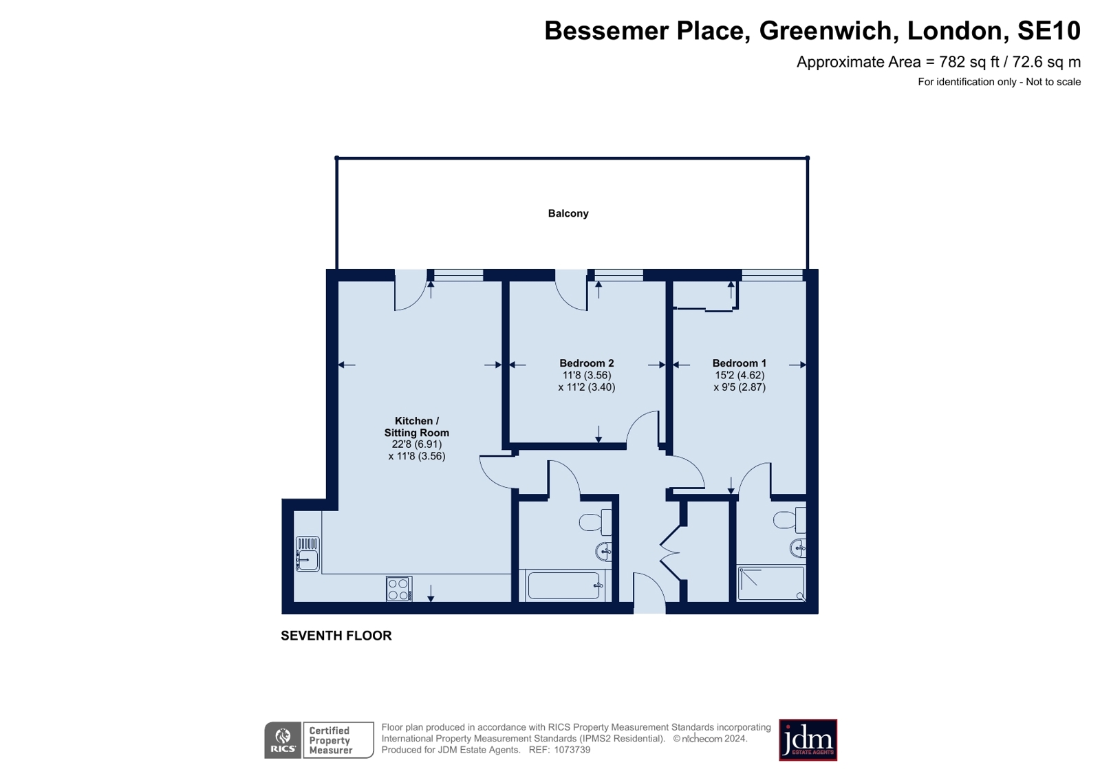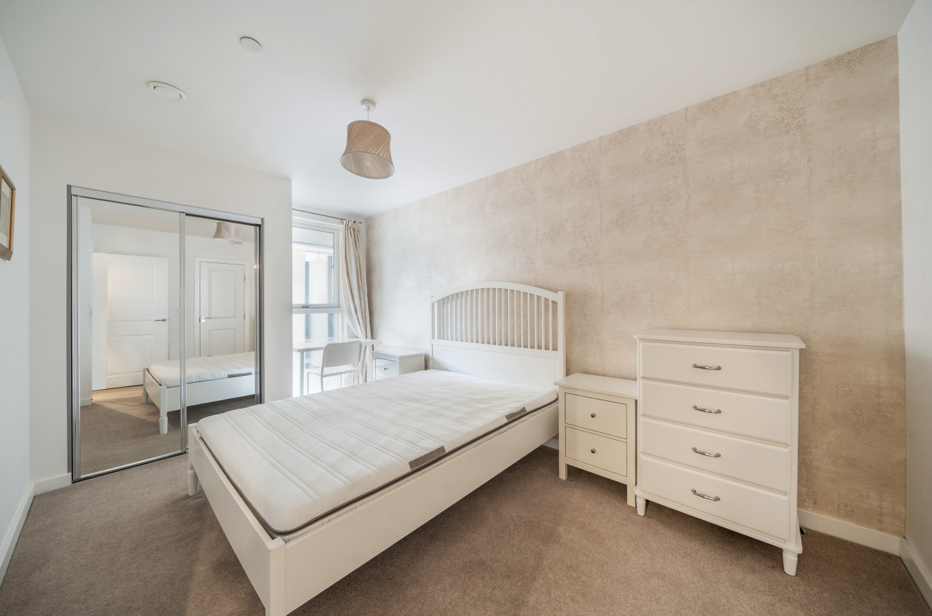 Accommodation comprises: Two spacious bedrooms both include king size beds, the master with fitted wardrobes and ensuite shower room, further double bedroom with access to balcony. Large reception room with open plan kitchen which has granite work tops and integrated appliances and a further bathroom. The apartment is located on the 7th floor and benefits from wooden floors, large balcony, concierge and gymnasium. The apartment is offered furnished and available early April.