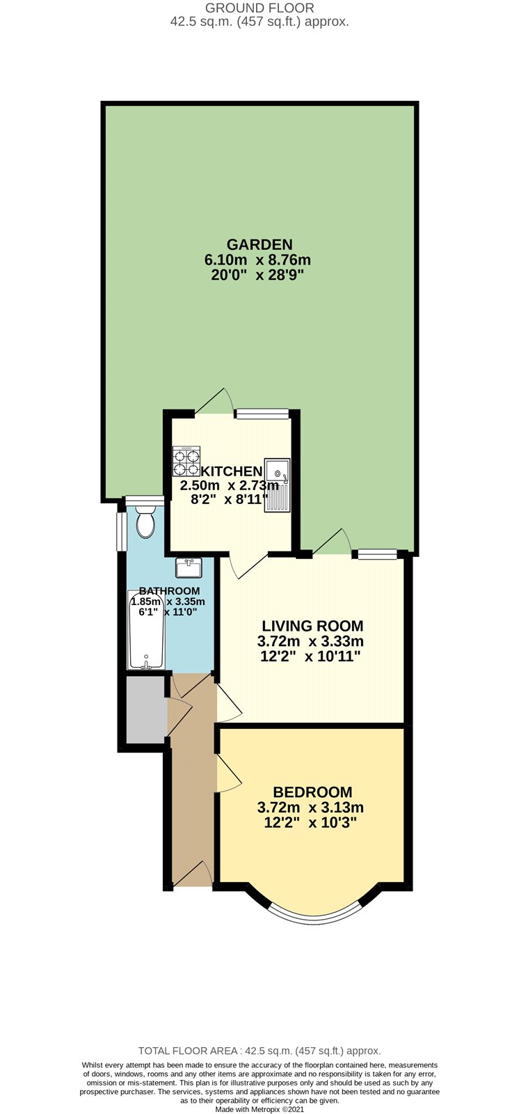 The property features a well-proportioned layout, including a bright and airy separate reception room, a fully fitted kitchen, a generous double bedroom, and a modern bathroom. Large windows throughout allow for an abundance of natural light, enhancing the sense of space.