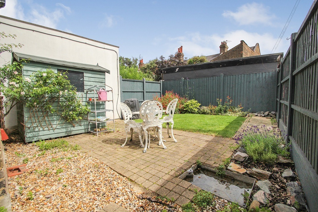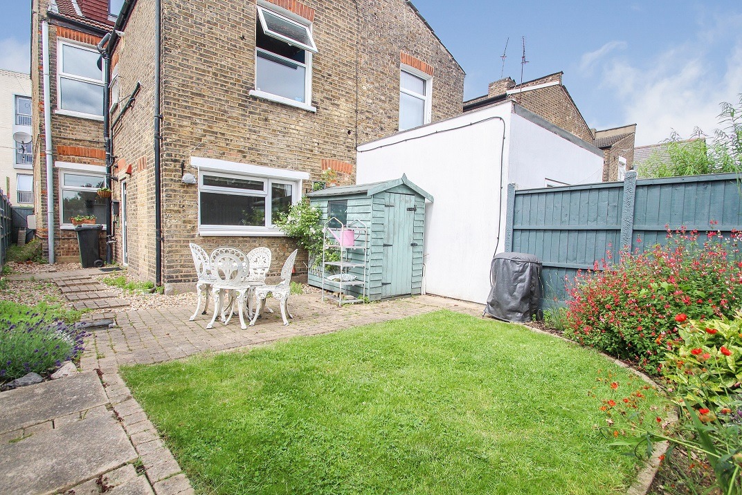 Located on the corner of Hainault Road, a side entrance gate takes you into the garden and then through to a double glazed front door that opens into the kitchen. The kitchen has laminate flooring, dado height sidewall panelling, wood effect work surfaces with white square tiled splashbacks, a stainless steel sink with mixer, a washing machine, gas cooker, fridge/freezer, white wall and base units, coving and spotlighting to the ceiling. From here, you walk out to the hallway, home to a useful under-stair storage cupboard for your vacuum cleaner and other less frequently used items, then at the far end of the hallway you have a spacious living area with laminate flooring, a radiator, dado rail, coving to ceiling, and the original ornate ceiling rose. A cast iron fireplace compliments the eye-catching box bay double glazed window.Behind the living room lies the bathroom, with vinyl floor tiles, a heated towel rail, a frosted double glazed window and a white three piece suite comprising a panelled bath with mixer tap shower riser and filing screen, a pedestal wash basin with mixer tap, and low-level toilet. The bedrooms sit on either side of the kitchen, starting with bedroom one, which has a double glazed window overlooking the garden, laminate flooring, radiator and coving to ceiling. Bedroom two also has laminate flooring, a radiator, coving to ceiling and double glazed window. You have sole use of the garden, with a pebble bed and stepping stones leading to the main area comprising a mixture of pebbles, paving and lawn. You can catch the morning sun for a spot of breakfast with the papers, then sunbathe on the lawn in the afternoon - the directional positioning of this garden makes this garden a wonderful suntrap. There's added outside space running alongside the property and a good sized shed to keep your gardening tools, barbeque and hooks for bicycle storage. As well as Leyton Midland Station, there are transport links into Stratford City, Westfield and East Village. Abbotts Park, Leyton County Cricket Club and the popular Francis Road area also nearby, and there's a great selection of food options nearby, with favourites such as Shish Mahal (Indian), Mora (Italian), Oceano (Portuguese) plus Bread and Oregano (Greek).