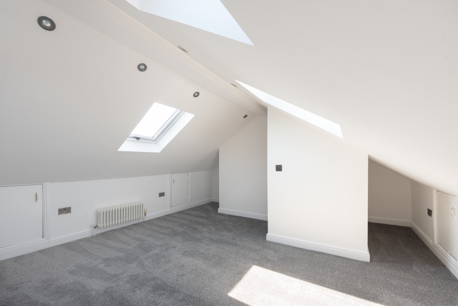 Stairs lead up to the landing area with freshly painted white walls and newly fitted grey carpets, providing independent access to each of the first-floor rooms and the stairs to the upper floor. The kitchen is configured in an L-shape with shaker-style base and wall cabinets in soft cream, with contrasting dark granite-effect work surfaces. Fully tiled backsplashes and limed oak flooring maintain the contemporary feel, and there’s an integrated oven with gas hob and extractor above, fridge-freezer and washing machine. The generous reception room is flooded with light from the south-facing bay window and offers space for comfortable seating, storage and a cosy dining area. The fully tiled bathroom has a modern suite comprising of a WC, vanity unit with inset basin and storage cabinet above and a bathtub with shower above and glazed screen. Bedroom one is a good-sized double which looks over gardens to the rear of the property, and the additional staircase takes you up to bedroom two – a loft conversion with multiple skylights providing natural light throughout the day. There’s also some useful eaves storage and a large radiator. The property is in an enviable location within the Francis Road area of Leytonstone, which is well known for its many small independent businesses, including shops, cafes, restaurants, and pubs – all lying in the beautifully preserved pedestrianised area, just a five-minute walk from the property. Local hospitality highlights include the Yardarm, the Heathcote and Star and Marmelo Kitchen, with its popular supper clubs. A vast array of other amenities can be found in the immediate area, along Leytonstone High Road and the surrounding area, including supermarkets, retail parks and many other local businesses. Leytonstone Central Line tube station and Leyton Midland Road Overground stations are both just a ten-minute walk.