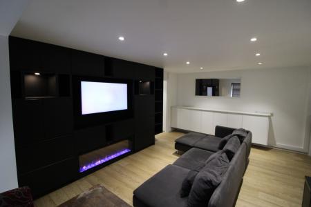 The standout feature of this home is the unique and impressive reception room, complete with bespoke built-in units, integrated TV, feature fireplace with mood lighting, a Miele built-in coffee machine, and a wine cooler fridge—perfect for both relaxing and entertaining.