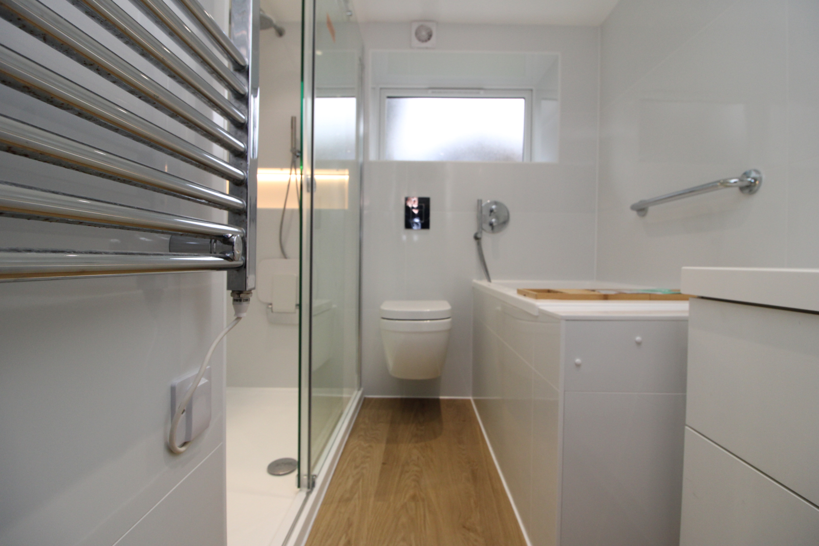 Recently refurbished to a high standard, the property boasts a luxurious bathroom featuring a deep soaking tub, separate double walk-in rainforest shower, and ambient mood lighting in the reception.. Stylish flooring runs throughout the apartment, enhancing the modern and elegant finish.