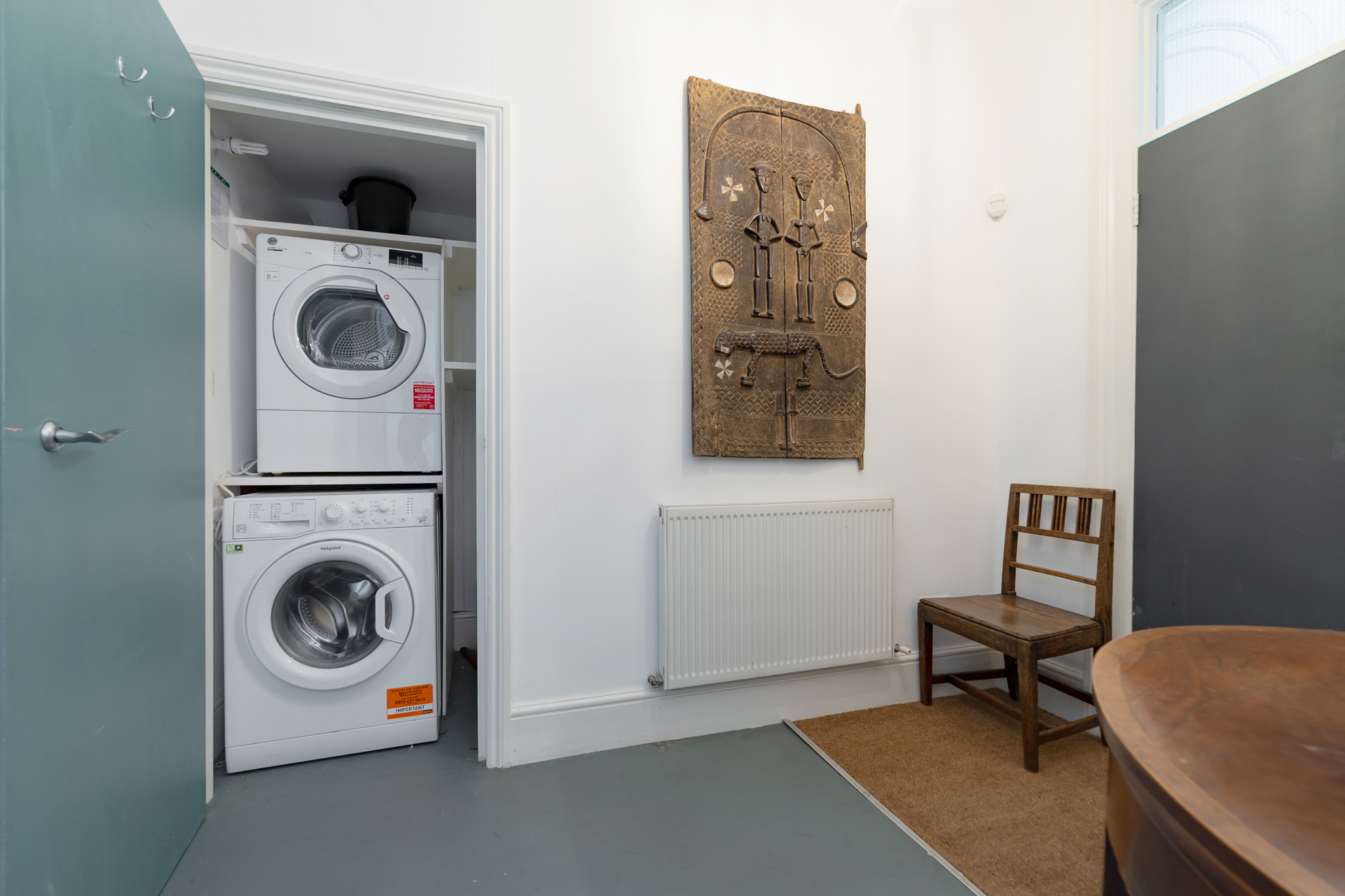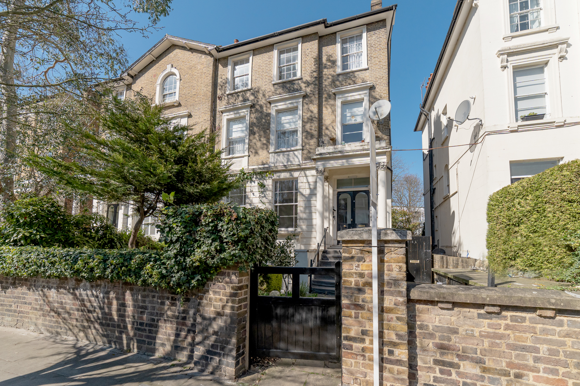 Available Now. A delightful two bedroom apartment on the raised ground floor of this imposing period house. The property benefits from wonderful high ceilings throughout, a balcony and rear garden. The accommodation comprises: entrance hall with utility cupboard containing washing machine and tumble dryer, reception room, open plan kitchen with dining area, main bedroom with walk-in wardrobe, second double bedroom and bathroom. Furnished or unfurnished. EPC = D Council Tax Band = E