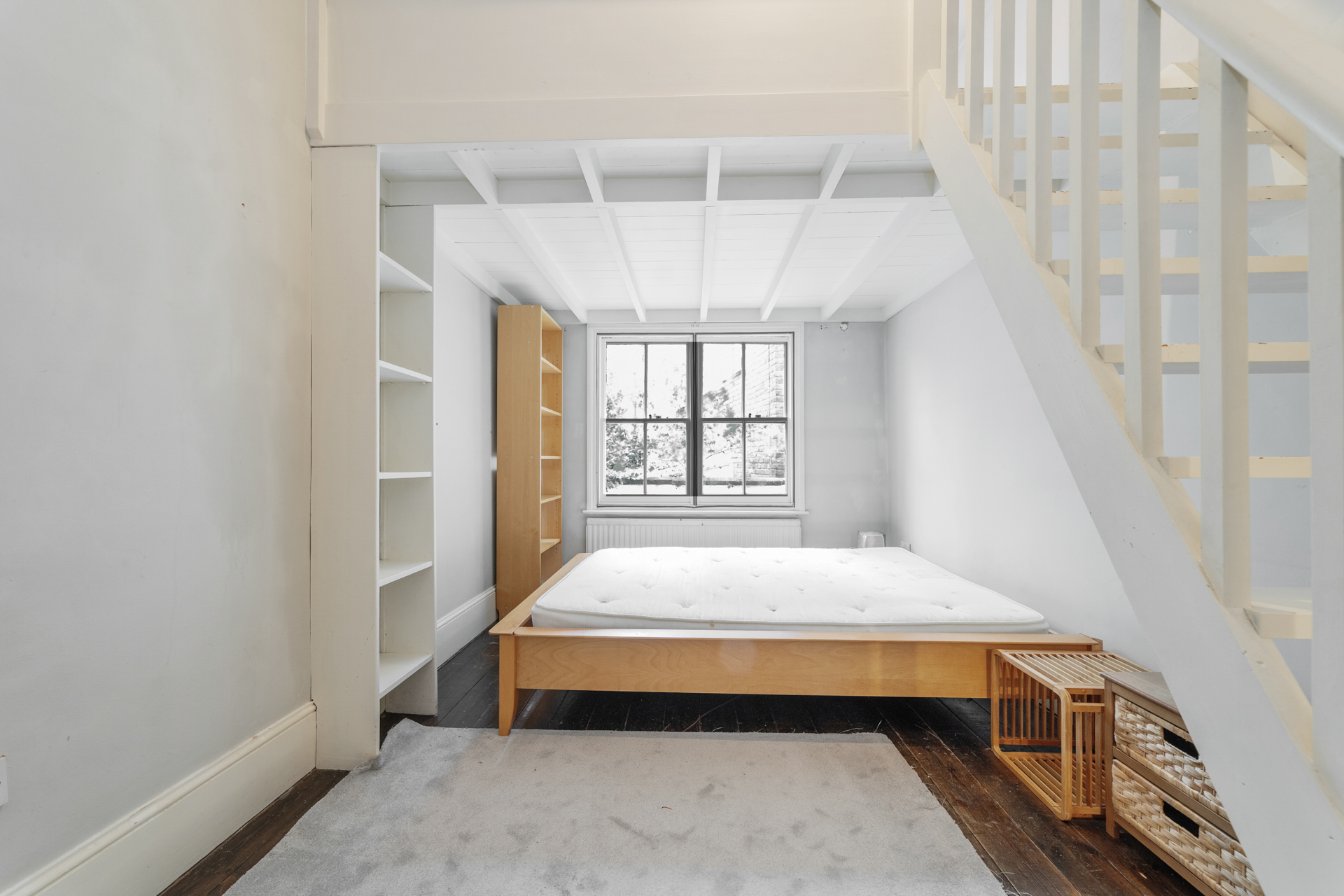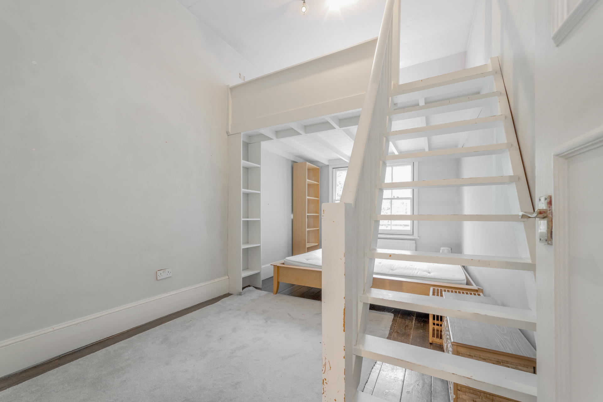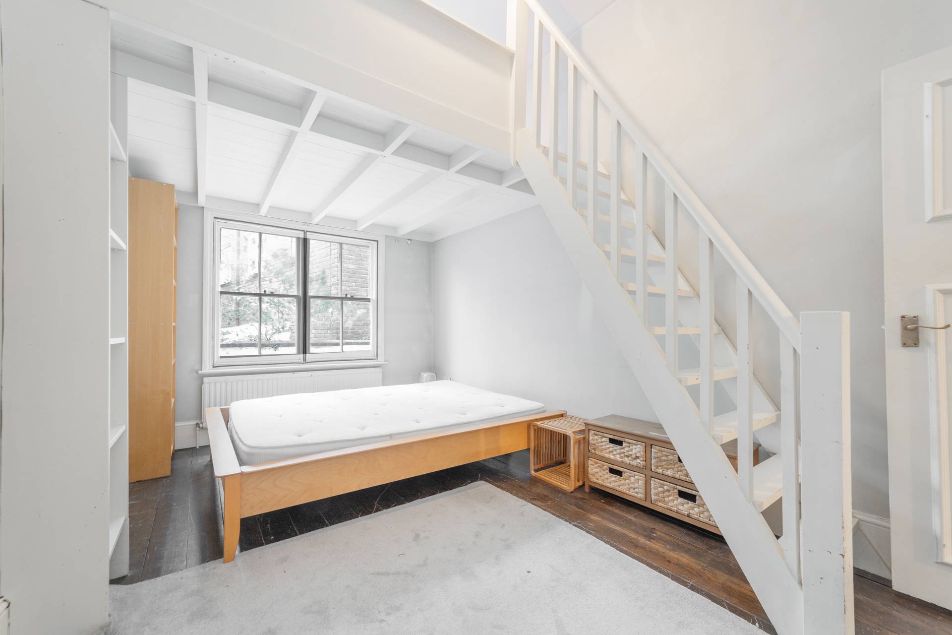 A desirable one bedroom on the ground floor of this imposing white stucco fronted building. Comprising a spacious reception room with high ceilings and a host of period features, double bedroom with galleried sleeping area which allows a study and lots of storage, separate kitchen and spacious bathroom.