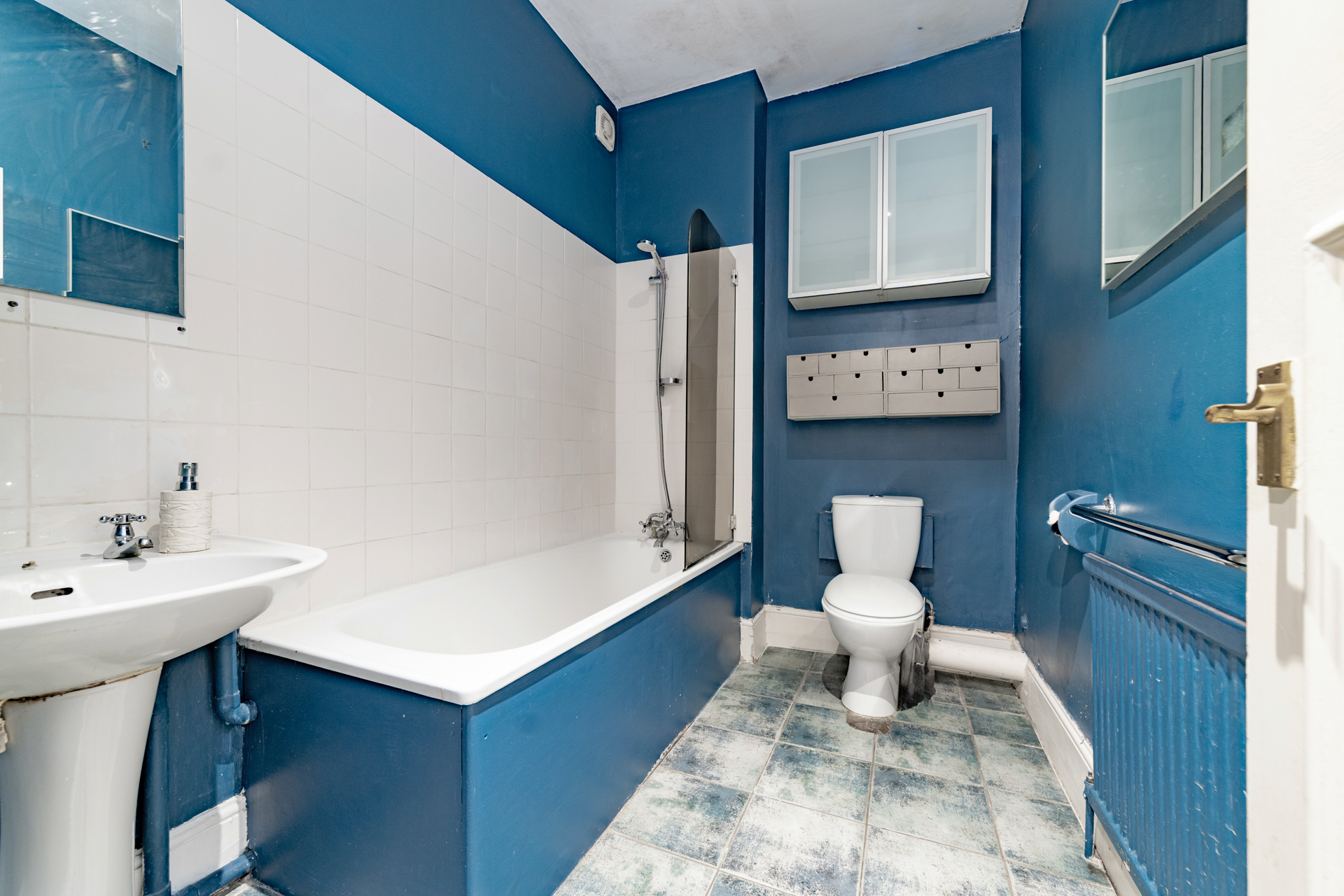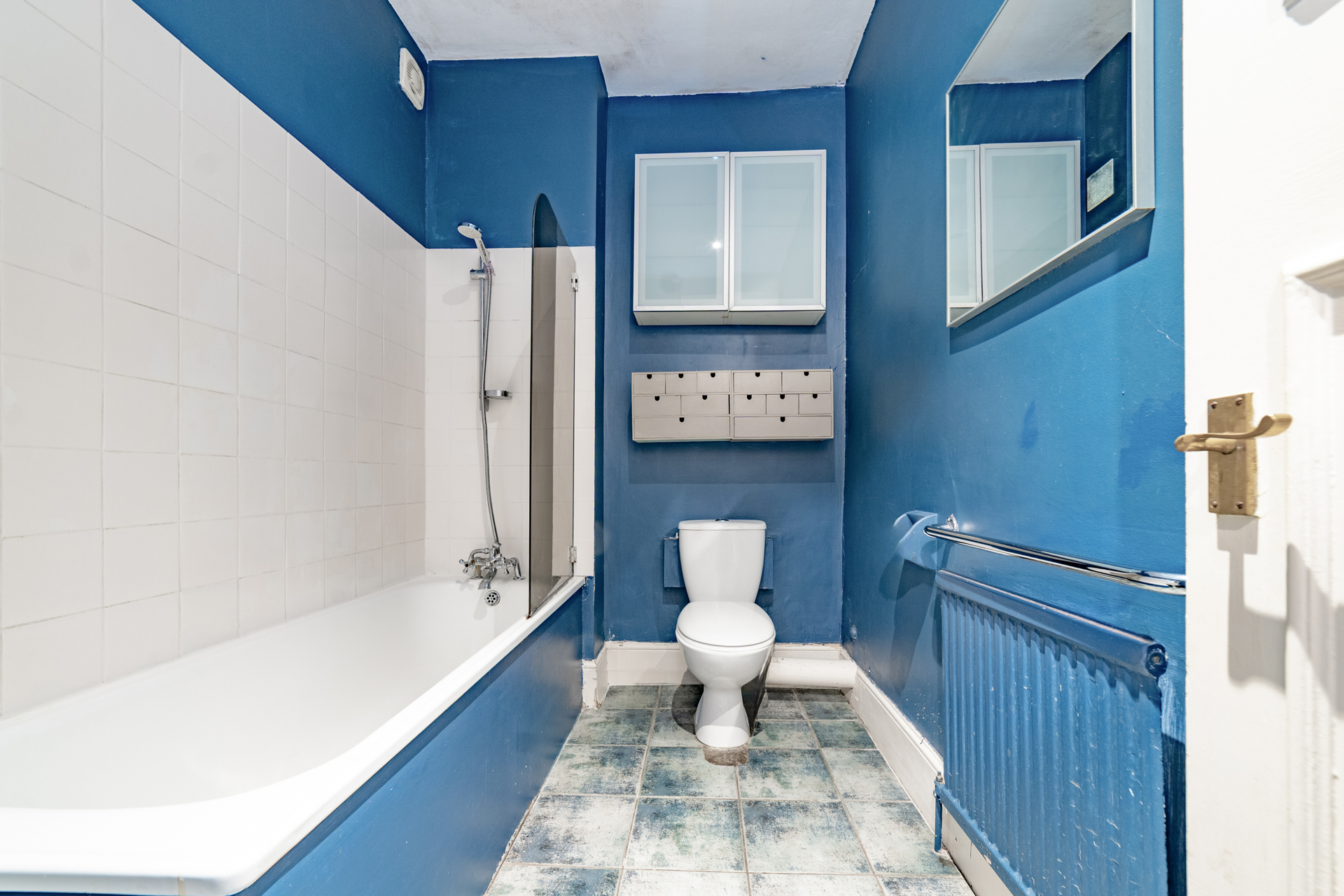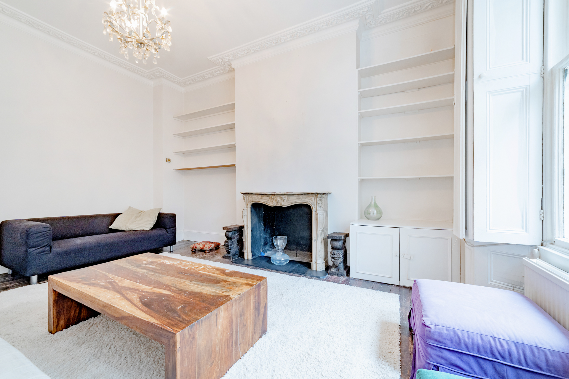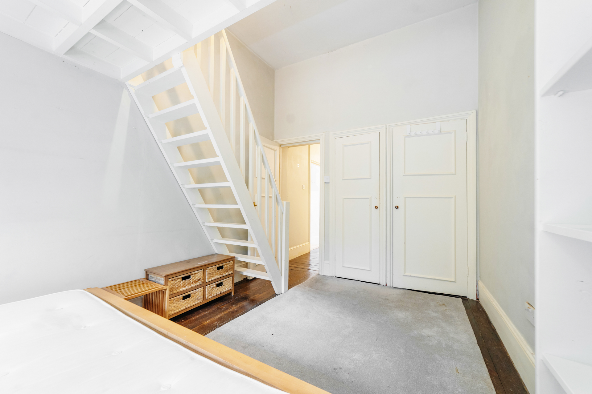 A desirable one bedroom on the ground floor of this imposing white stucco fronted building. Comprising a spacious reception room with high ceilings and a host of period features, double bedroom with galleried sleeping area which allows a study and lots of storage, separate kitchen and spacious bathroom.