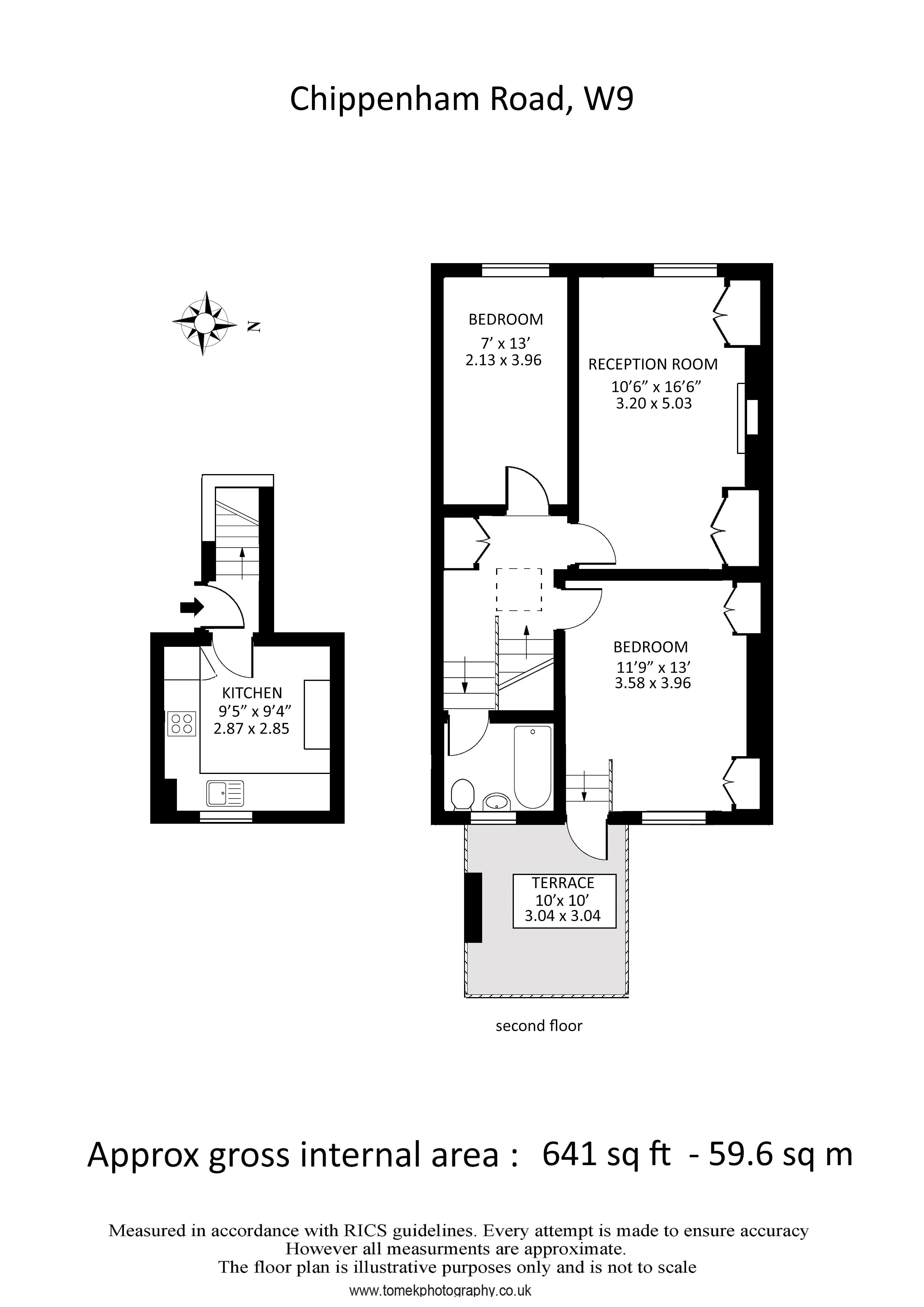 Fully fitted kitchen with wood flooring, two double bedrooms one with built in wardrobes and direct access to roof terrace and spacious living room with wood flooring and feature fireplace.