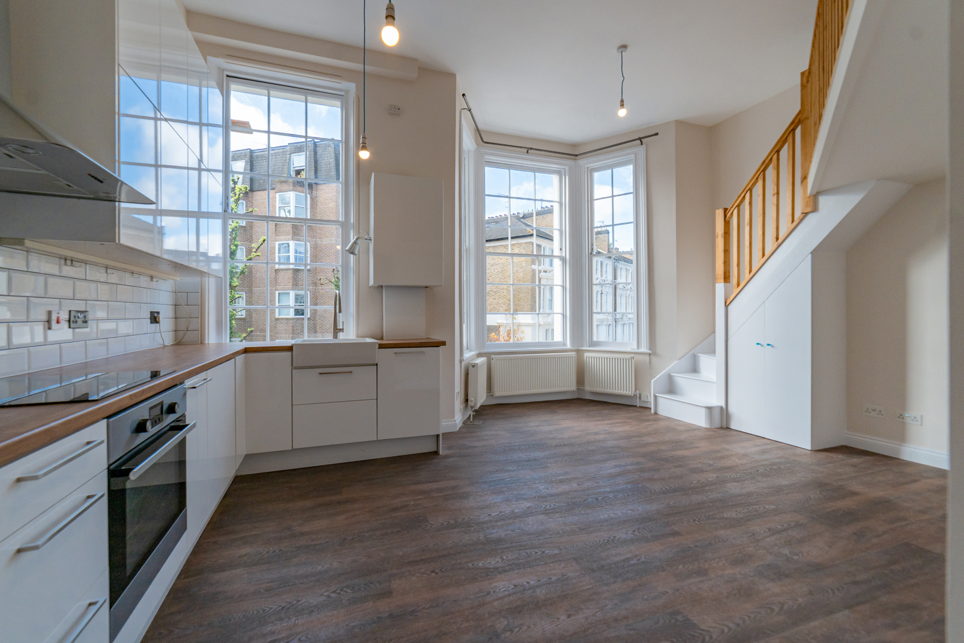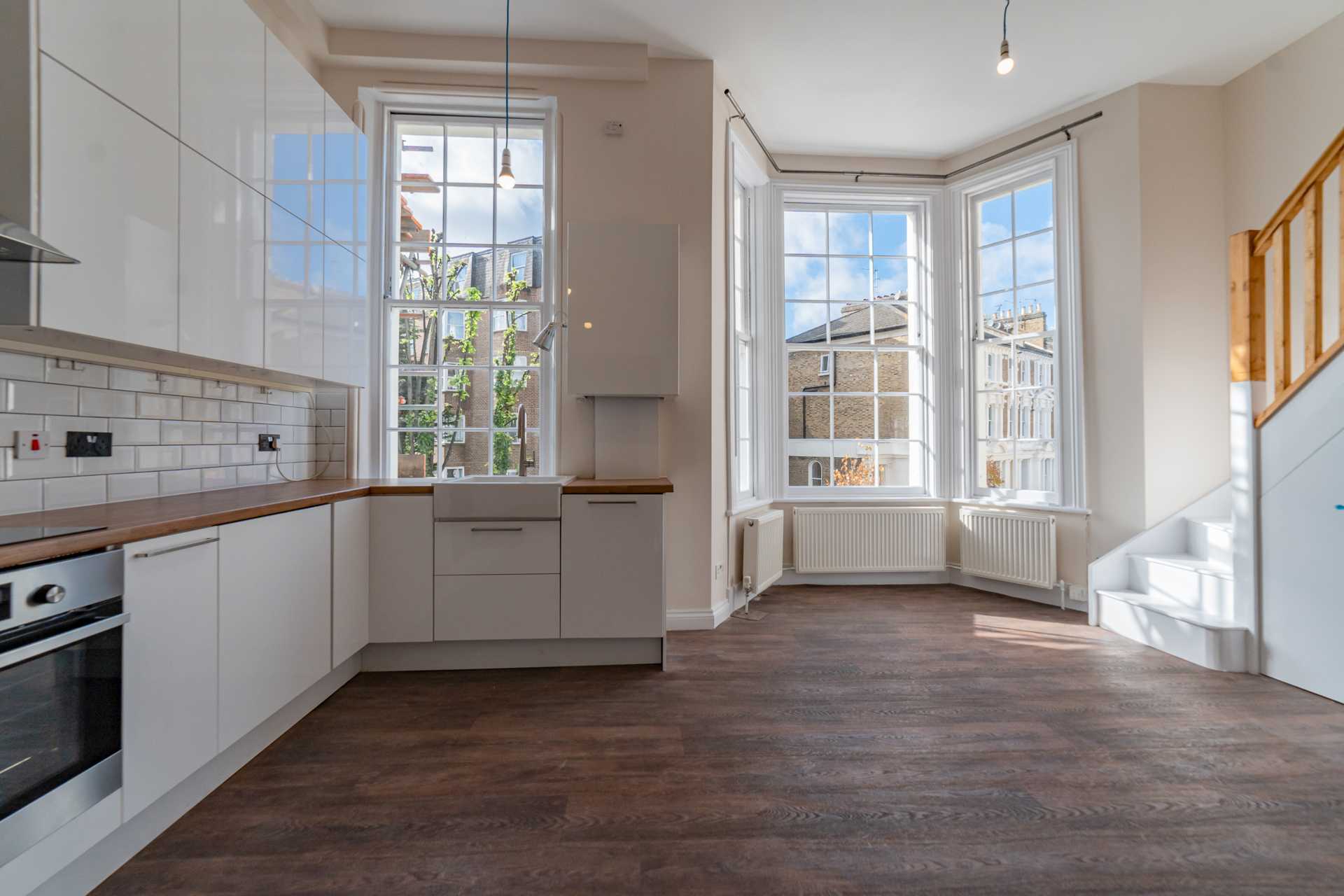 A stunning studio apartment on the first floor of this converted period house. The property has fantastic high ceilings, bay-windowed studio room with space to dine, modern open-plan kitchen, mezzanine sleeping area, nice bathroom and good storage. Grittleton Road is a popular residential street close to shops and transport. Available now. Unfurnished. EPC=C Council Tax Band = B