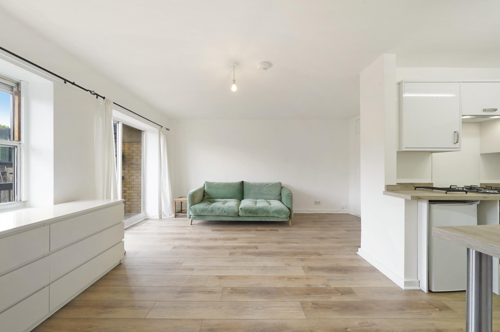 Bright and spacious one bedroom 2nd floor flat located a 1 minutes walk from Stepney Green Station. The property is neutrally decorated throughout, good size double bedroom, open plan kitchen reception with south facing balcony and off street parking. The property is offered part furnished and is available from 11th April 2026. EPC BAND C and Council Tax Band B.