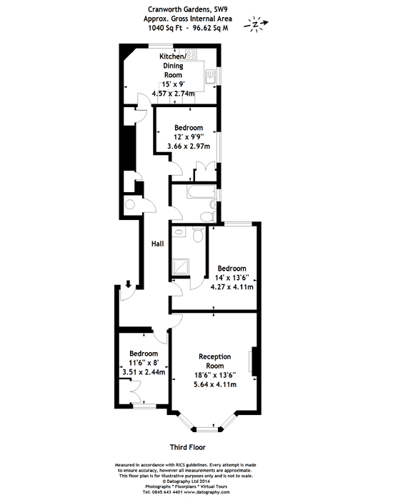 Large three double bedroom / two bathroom apartment, fully fitted kitchen with dining area and a large reception room.