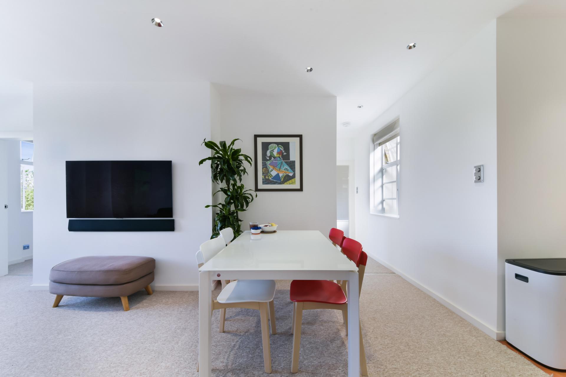 The reception area and bedroom are both generously sized and flooded with natural light. Ample storage space is available with two storage cupboards, and the separate kitchen is equipped with a fridge/freezer, washing/dryer machine and dishwasher.