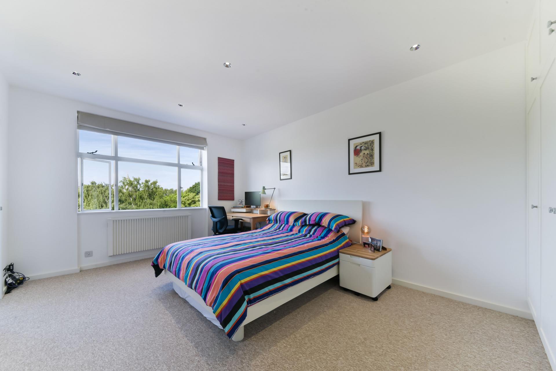 The building itself is peaceful and offers a lift that provides access to this 4th floor flat which has spectacular views of Clapham Common. Further benefits include access to secure off street parking. A tranquil courtyard garden completes the package.