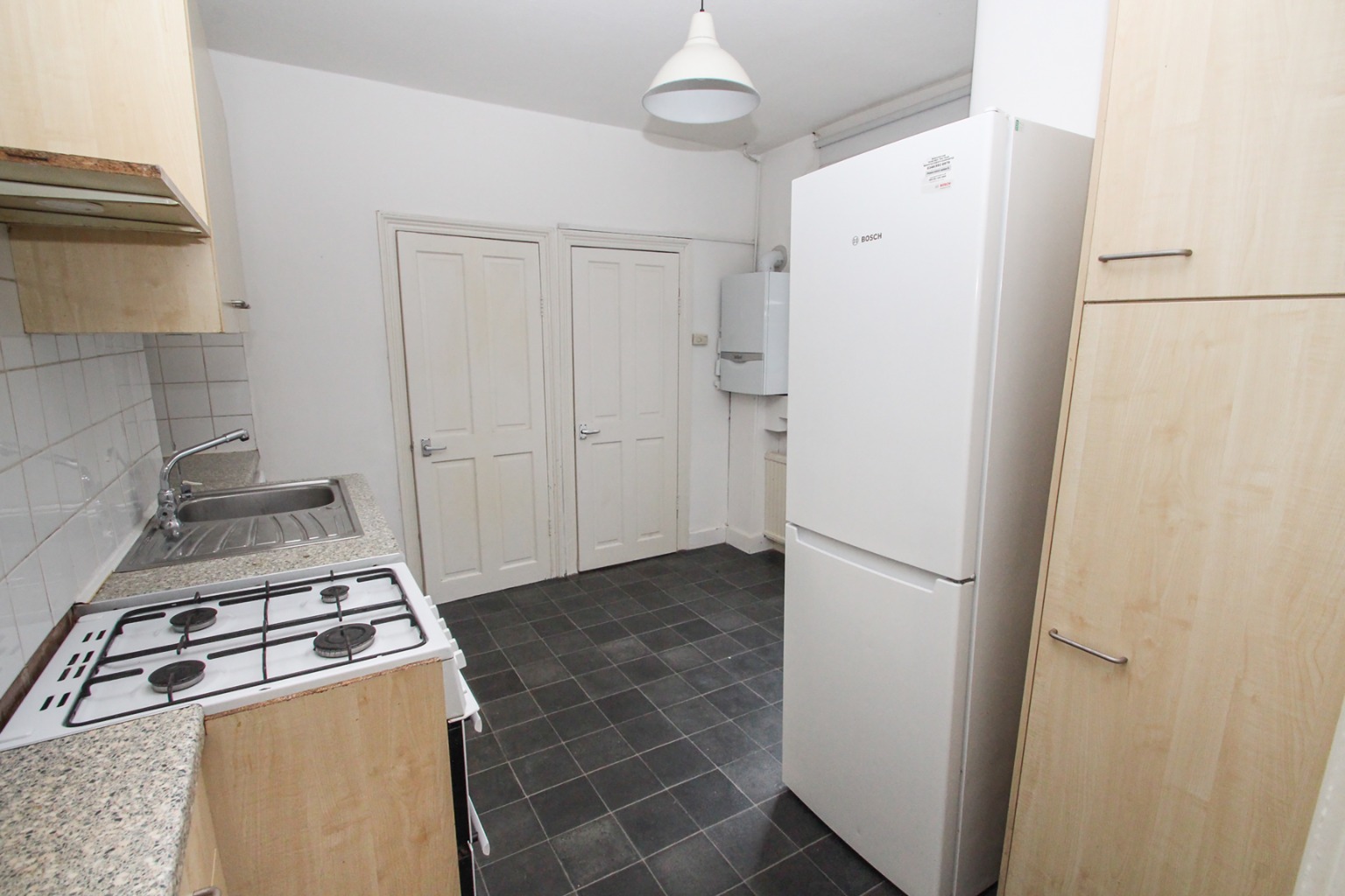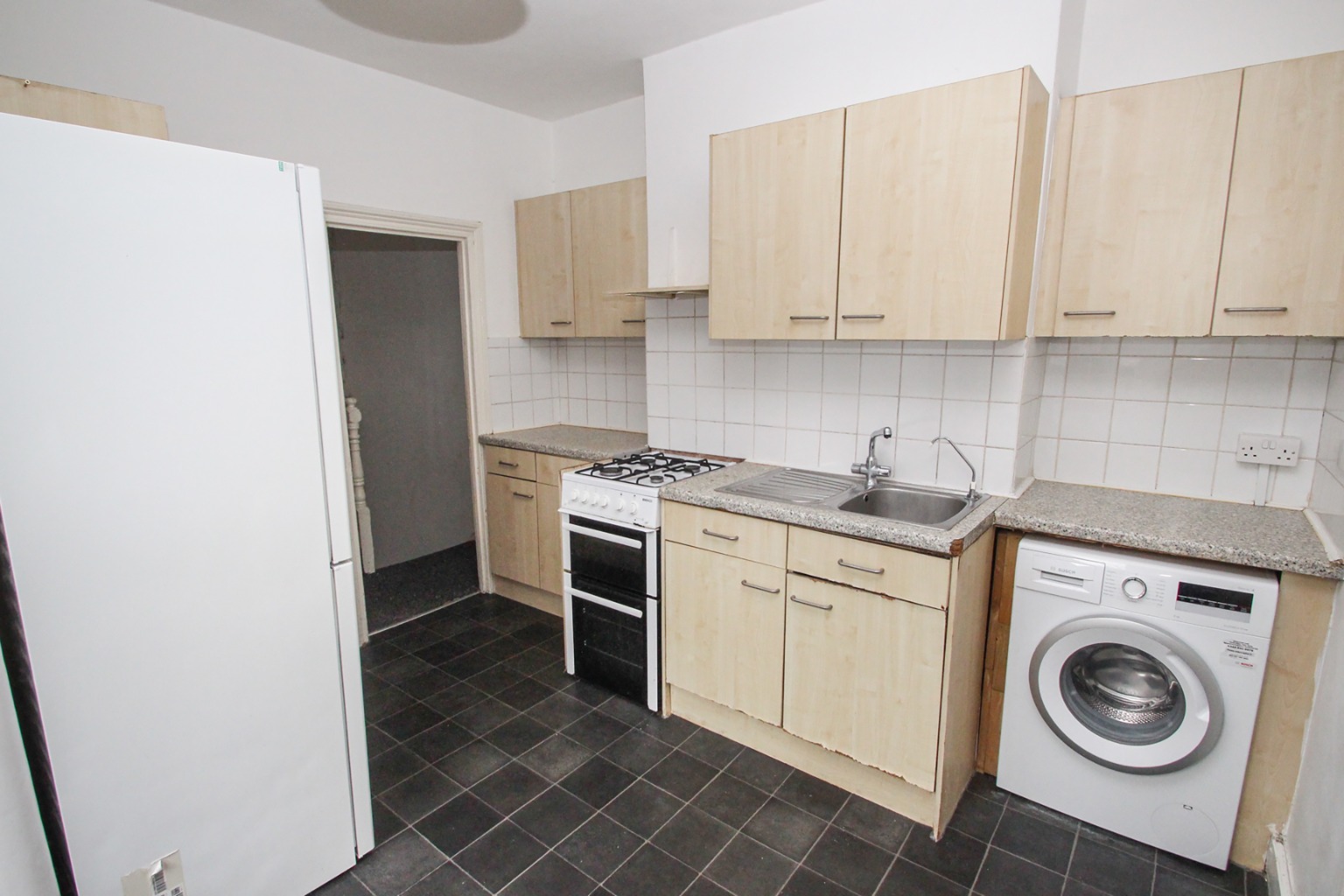 Next, the kitchen is positioned to the middle of the property making it a central point of this home. With the essential properties in place, including gas oven, washing machine and fridge freezer. There is also likely enough room for a small table.