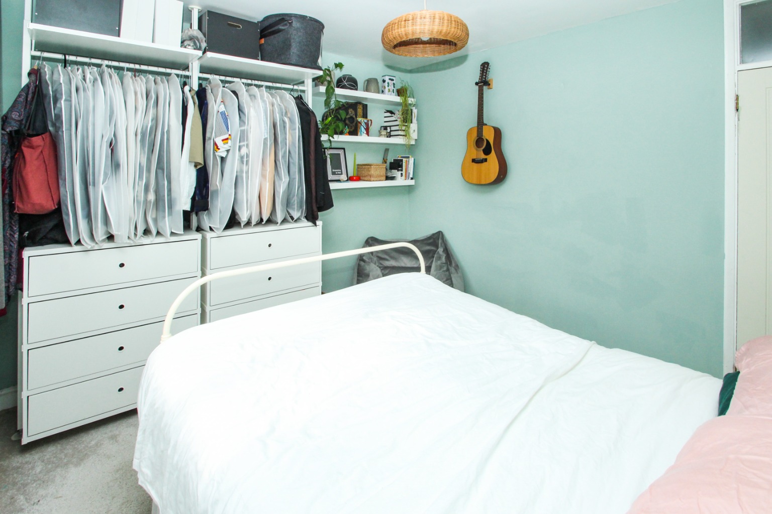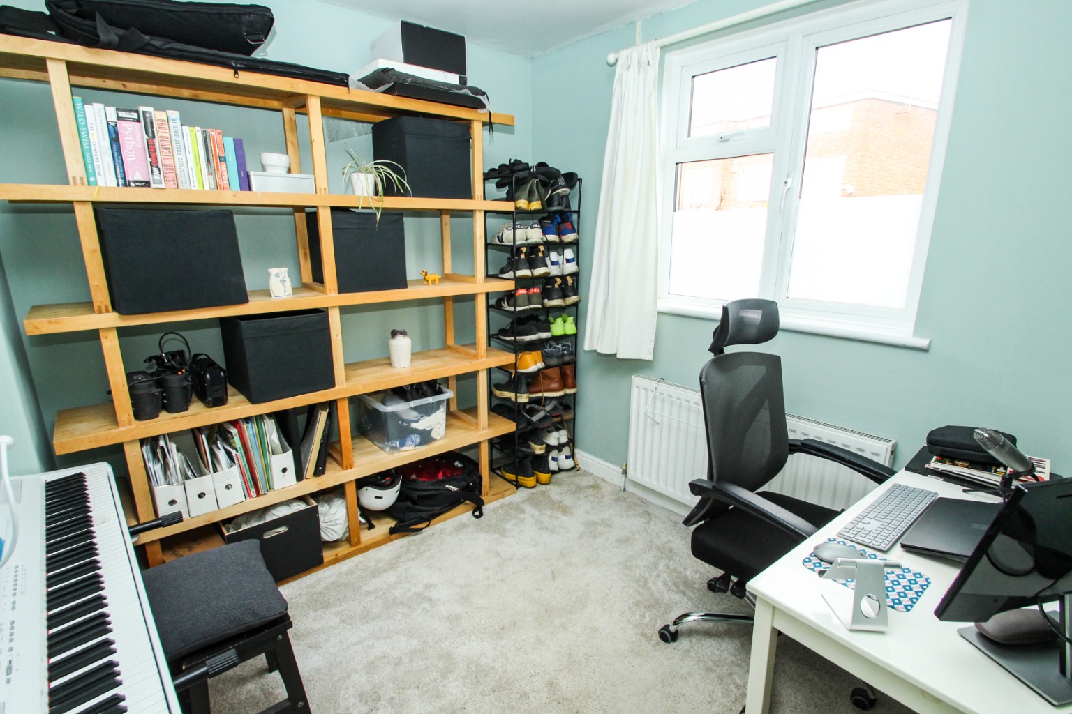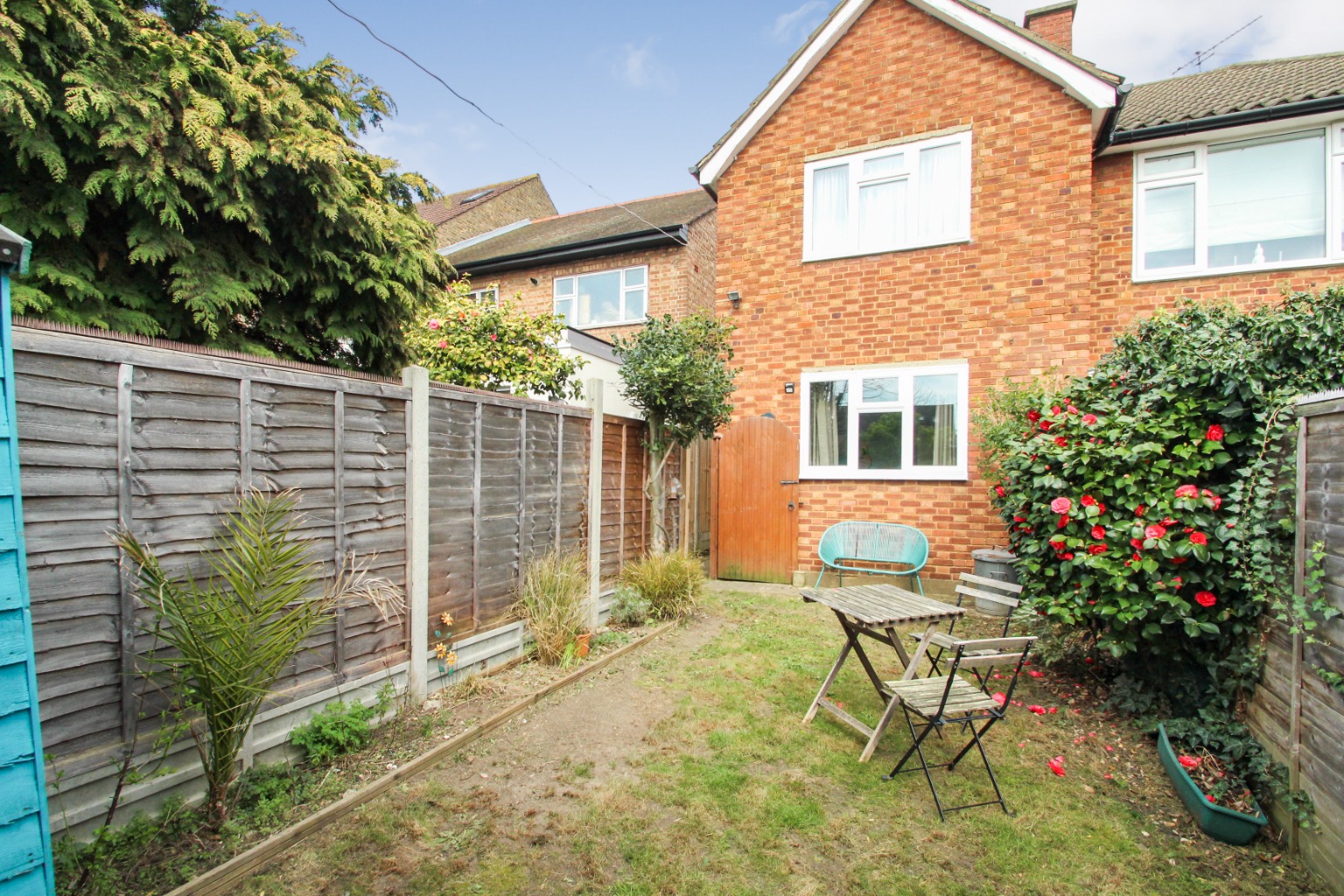 Heading to the rear of the property, the three piece bathroom suite has a stylish overhead shower fitting plus removable fitting, with glass splash screen and handy storage under the sink unit. Finally, the rear double bedroom is also carpeted and includes wall-mounted shelving, exposed clothes rail, and double draw units for storage and overlooks the pretty rear garden. The garden is mainly laid to lawn with low maintenance bedding and a shed, which is a private space to enjoy those warmer months.