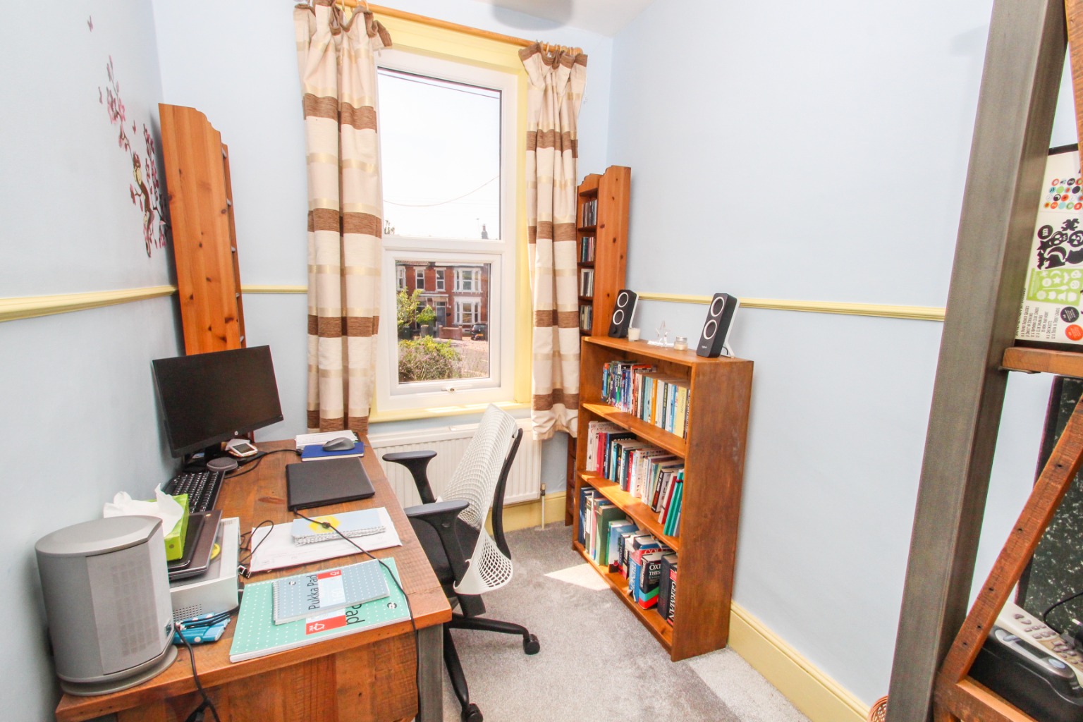 The three bedrooms are all carpeted, two are generous doubles with the front room boasting the classic bay window. The third room is single or would make a nice office space for those who may spend time working from home.