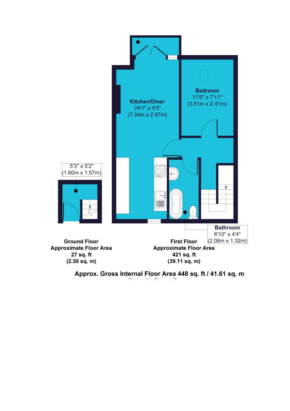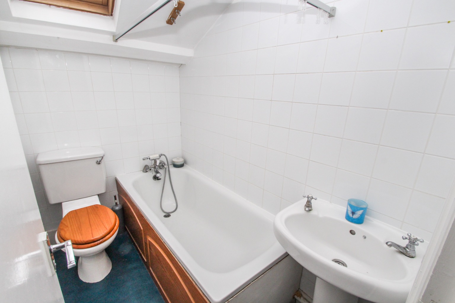 Positioned on the top floor, the property entrance hall has additional space and height for added storage or even a small desk space, before continuing further up into the property itself. Reaching the top you get a real sense of warmth to this nice bright property, which includes windows to the stairs and sky light windows to both the bathroom and the bedroom. The bedroom is big enough for a double bed and the bathroom although petite has everything you need.