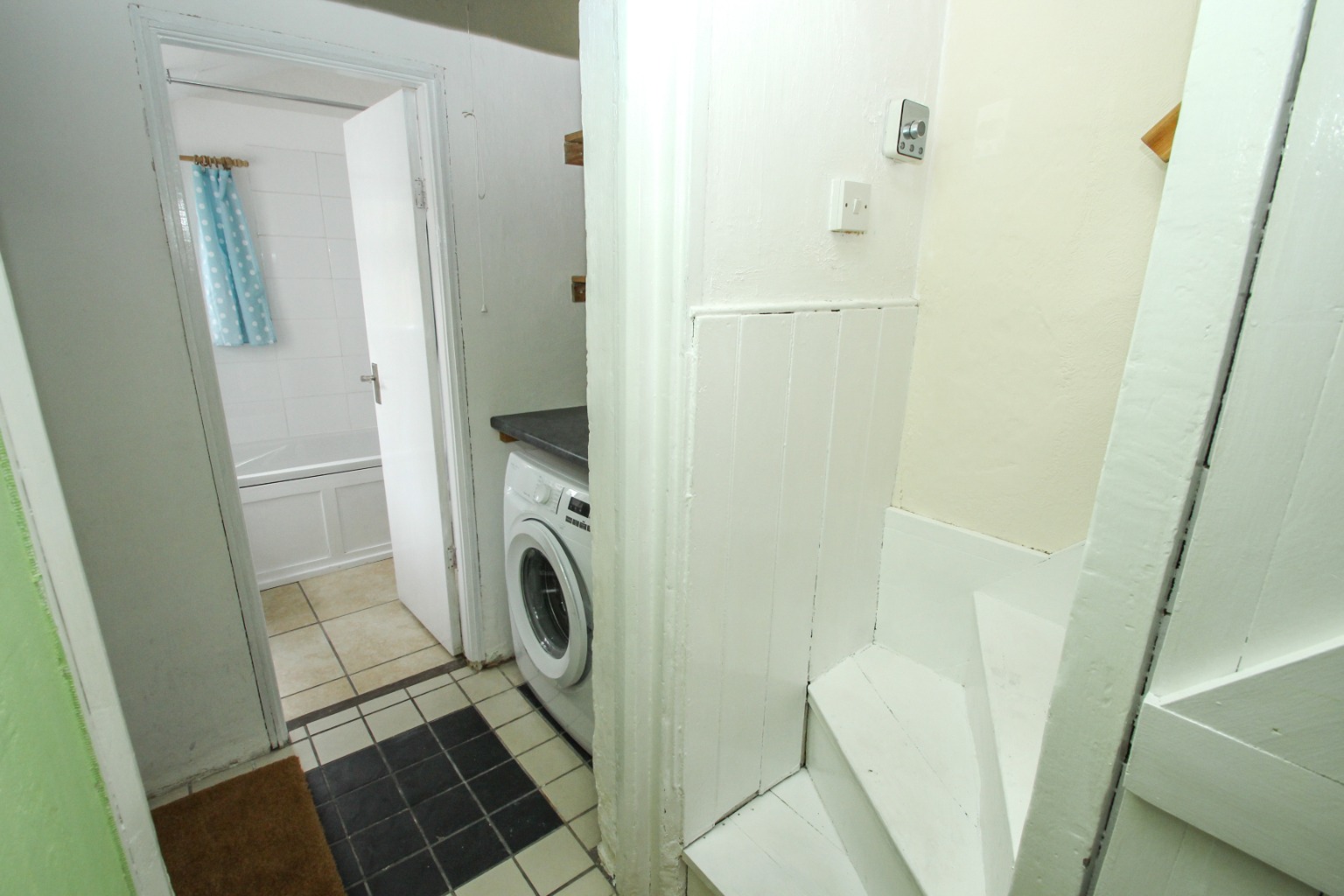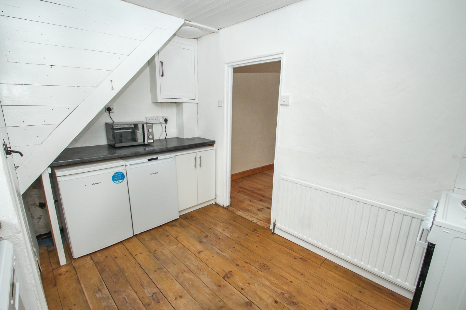 Heading upstairs, there a are two bedrooms. The main bedroom to the front has two free standing wardrobes with a large draw with the second bedroom has an original cupboard for hanging a few items with an additional storage cupboard above the stairs.