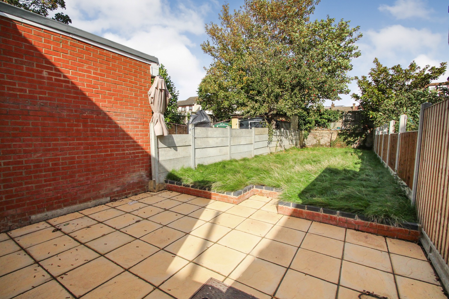 The kitchen is equipped with the essential appliances, including an electric oven and hob with overhead extractor, an integrated dishwasher, a fridge/freezer, and a washing machine. There’s also plenty of cupboard space.Stepping out from the kitchen to the sizeable garden, with a front patio leading to a lawned section, perfect for entertaining friends and family in the warmer months.
