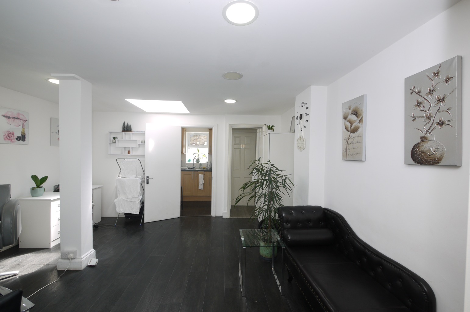 One of the unique selling points of this commercial unit is the excellent natural light that floods the interior, largely thanks to strategically placed skylights. This creates a bright and inviting atmosphere, enhancing the appeal for both customers and employees. Beyond the main shop, a small, private courtyard at the rear offers a valuable outdoor space, perfect for a staff break area or additional storage.