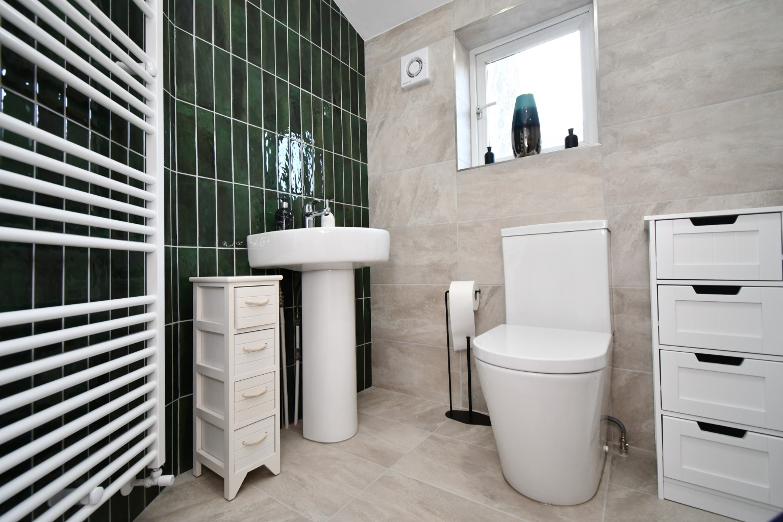 Ascending to the first floor, you will find three well-proportioned bedrooms. Each bedroom offers comfortable living spaces, ideal for families, couples, or requiring a home office. The neutral decor throughout allows new tenants to easily personalise the space to their own taste. The bedrooms benefit from good natural light, creating peaceful retreats.