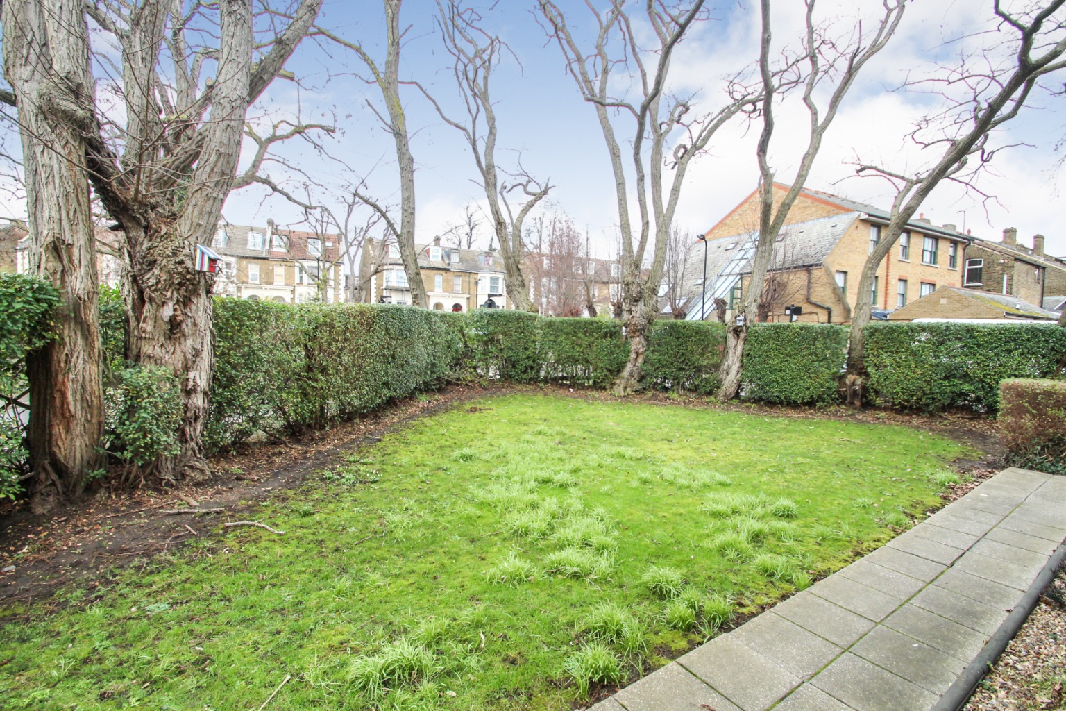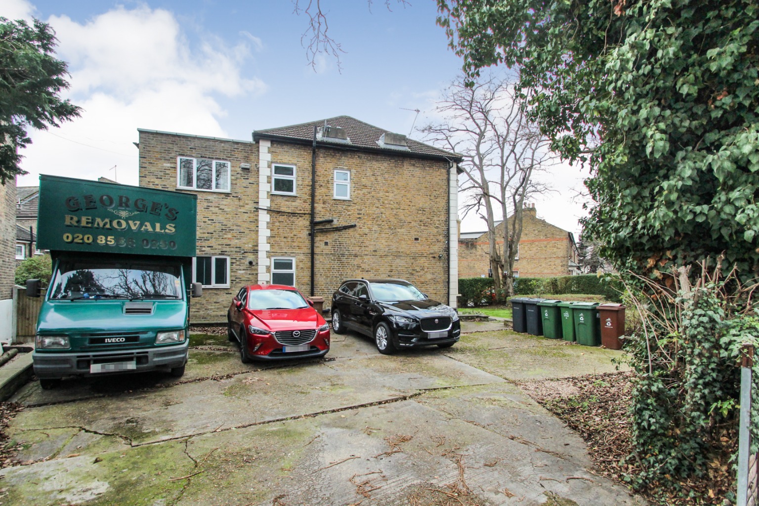 The building which this flat is part of comprises just four properties, and there's an off-street parking area operating on a first-come, first-served basis, although there's easily room to fit four cars. There's also a communal garden to the front with hedges separating the space from the pavement.