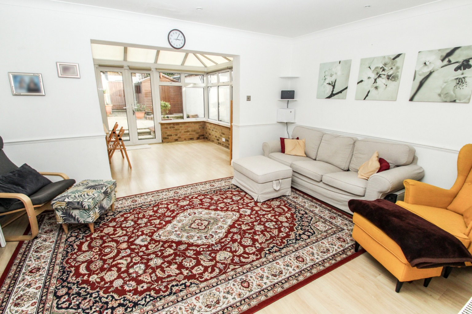The living room is good size, located in the middle of the home, and from here you walk through a wide opening into the conservatory, which lights up the entire living area, which can double up as a dining area.