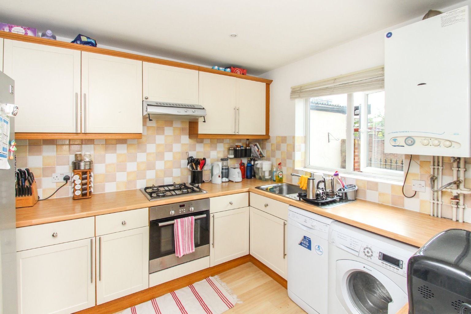 Two of the bedrooms are double sized, both with fitted wardrobes, and the third bedroom is a single with fitted shelving, so this home is ideally suited to a small family or two sharers requiring extra space, perhaps for a home office. The bathroom is also upstairs, adding convenience at bedtime and in the mornings.