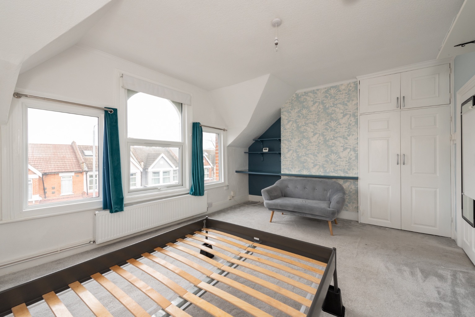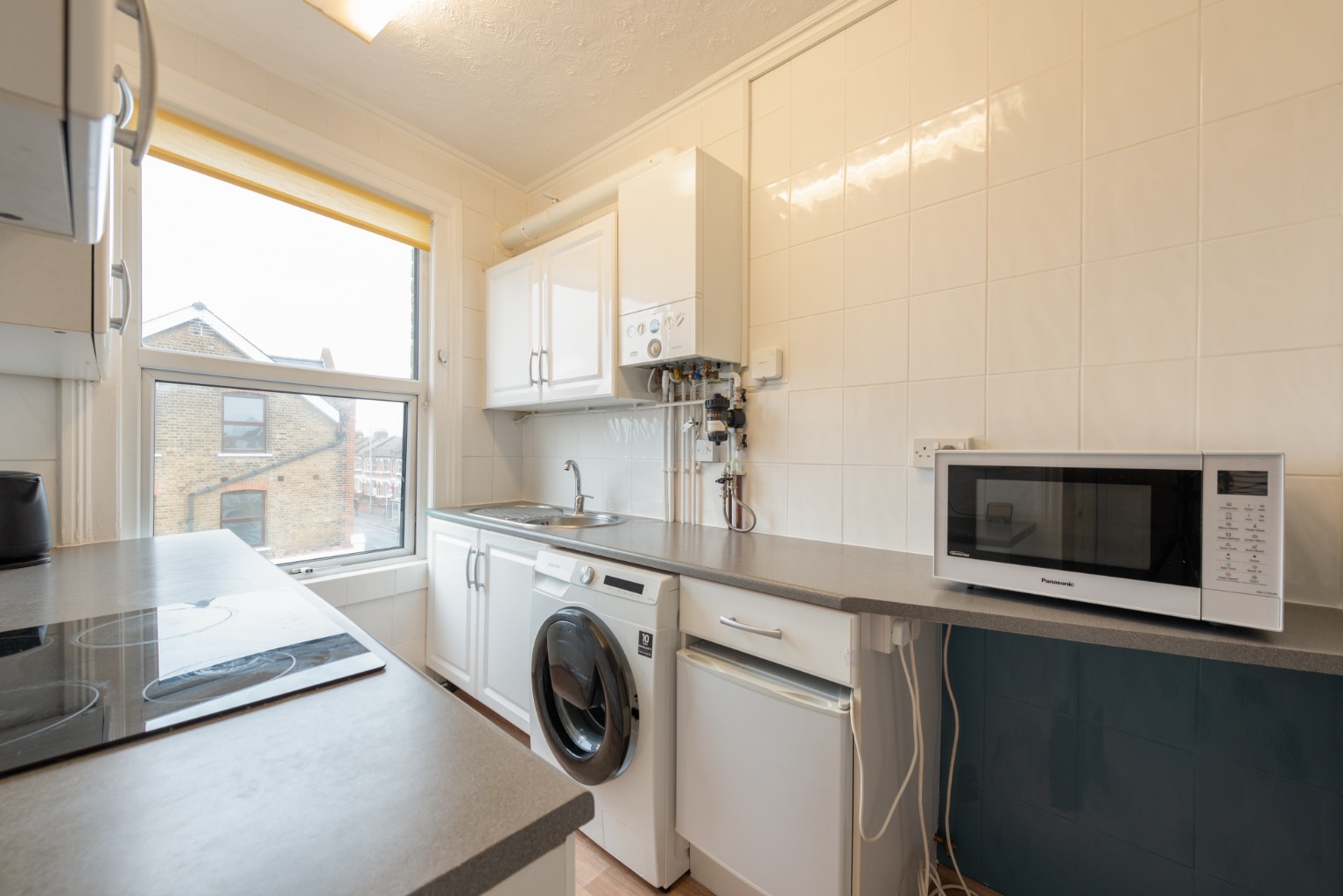 Located just a short walk from the tube station, this furnished studio flat comes with gas central heating, double glazing, plenty of storage space and a separate fully fitted kitchen. The property is available to rent now, subject to satisfactory referencing. From the street door, a staircase leads you up to the studio flat, and once inside, you walk through a small lobby area and into the living space, which has new grey carpet, triple windows to the front, a shelving unit, fitted wardrobe, double bed base and a two-seater settee. In the lobby area, there are two deep storage cupboards and doors taking you to the kitchen and the bathroom. The kitchen has fitted wall and base units, an electric hob, a microwave oven, a washing machine, a fridge, and a small freezer. The landlord is going to provide a tumble dryer too. In the bathroom, there’s a bath with a shower attachment, a wash basin atop a unit for all your toiletries, and a low-level toilet. Living here not only puts you within easy reach of the tube station, making this the ideal home for a single professional but there are also bus stops on either side of the road to make life easier when coming home with your shopping. The Heathcote and Star pub, plus the Filly Brook bar, are just down the road should fancy a glass of something cold (or hot) and a bite to eat. You can be on Francis Road in around 10 minutes, home to an array of independent shops along a pedestrianised stretch of the road. To view this property, please speak with one of our friendly and helpful property professionals.