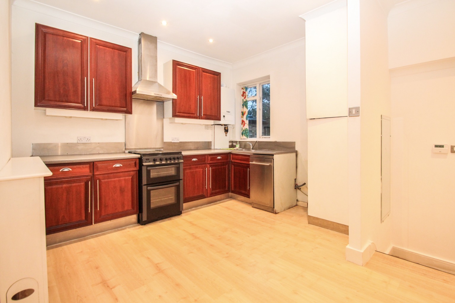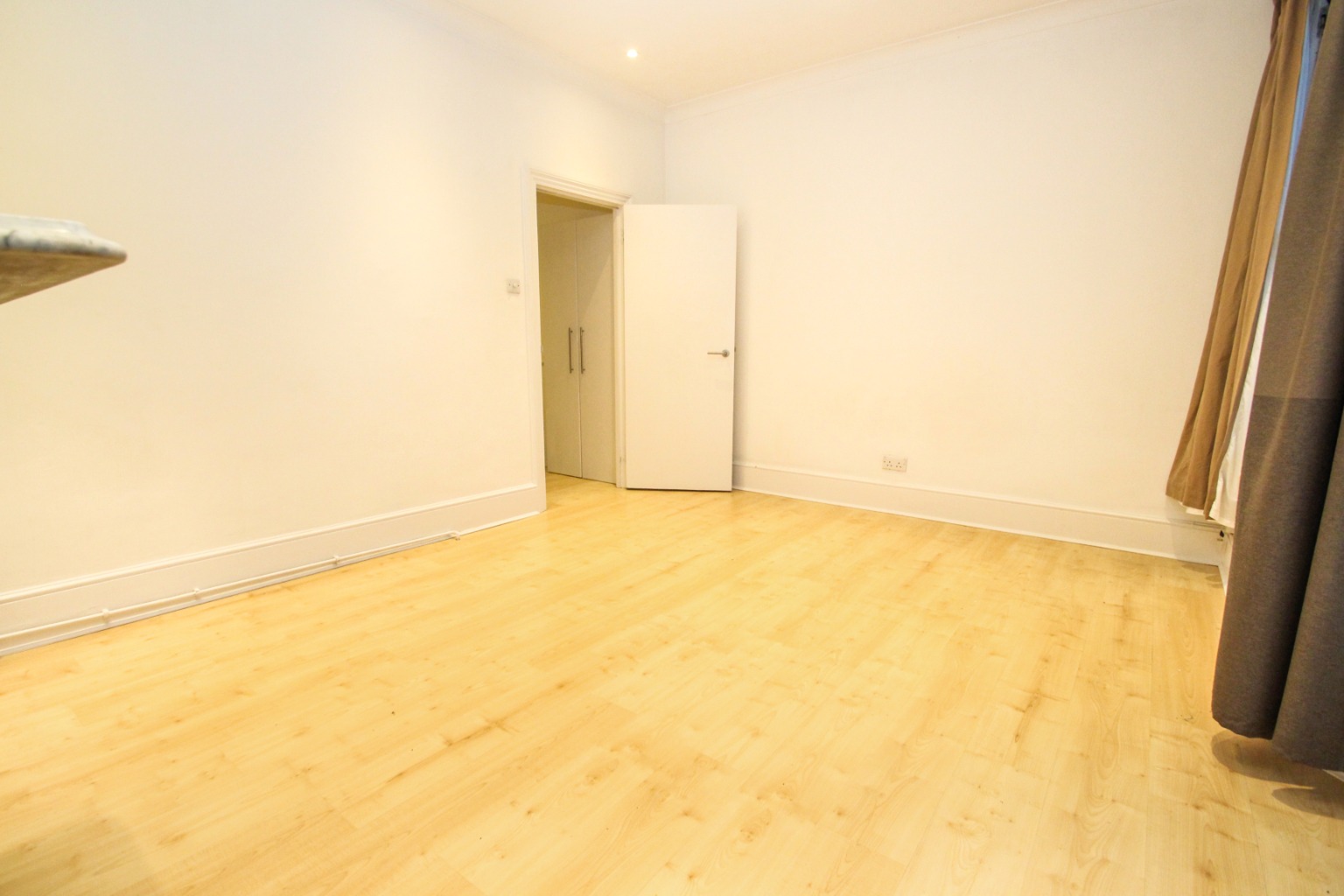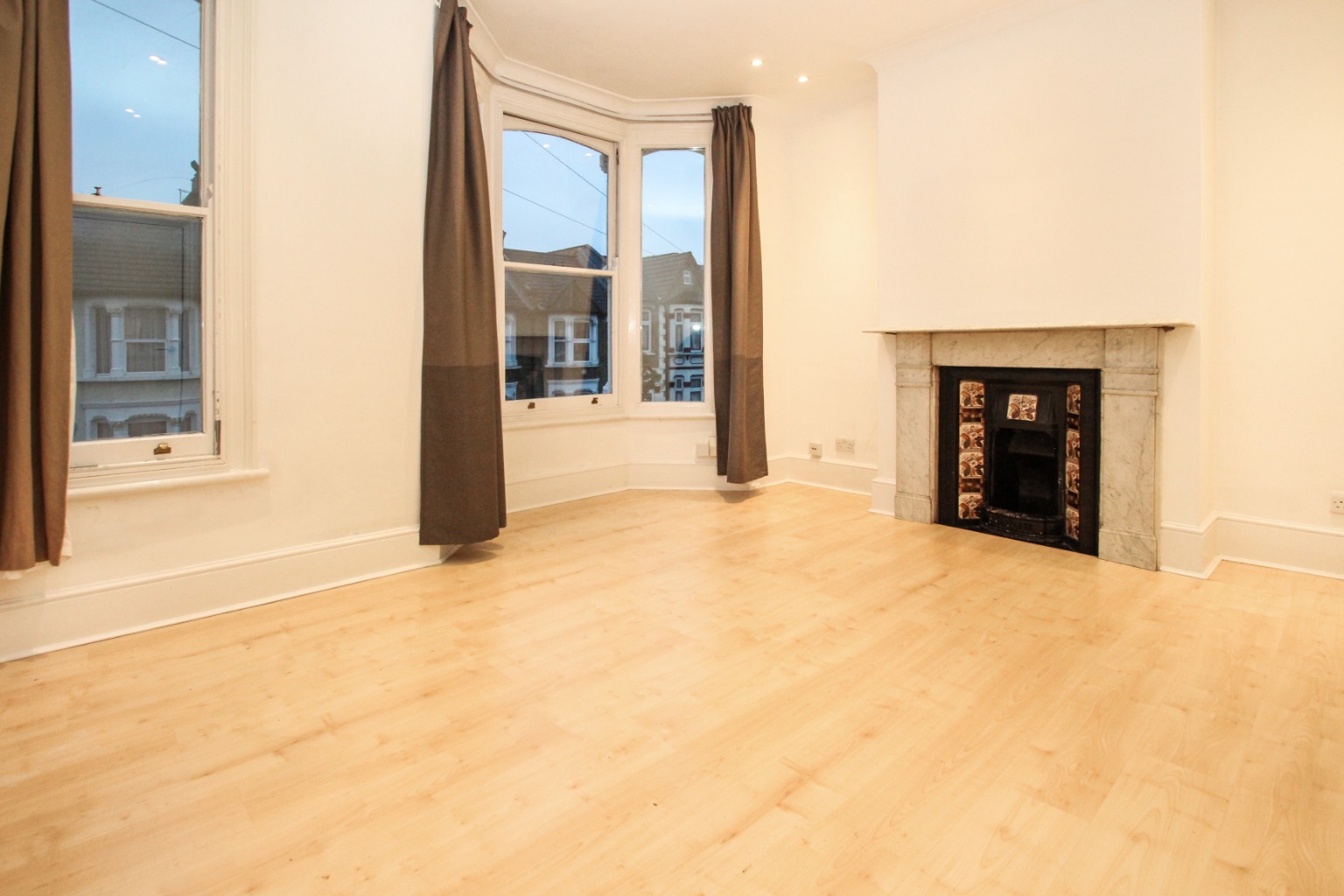 The kitchen, laid with laminate flooring is open and provides a lot of space. There is room for a small dining area and enough worktop and cupboard space. Behind the kitchen is a large reception room. Laid with laminate flooring, large bay windows floods in natural light keeping the room nice and bright. Its original, periodic features remain consistent through the property such as the stylish fireplace and sash windows.