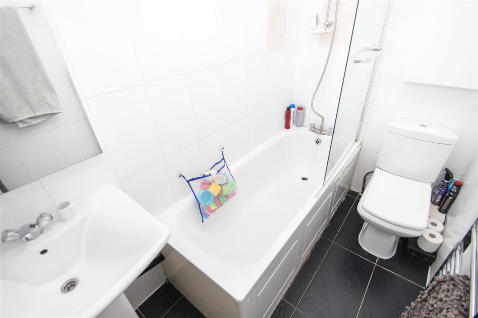 Upstairs, the three double bedrooms we referred to earlier, each feature stripped-painted floorboards, and like the rest of the home, benefit from double glazed windows and gas central heating, helping to keep you snug over winter. Also located on the first floor, the family bathroom with contrasting tiles to the walls and floor, with a shower attachment and screen over the bath.