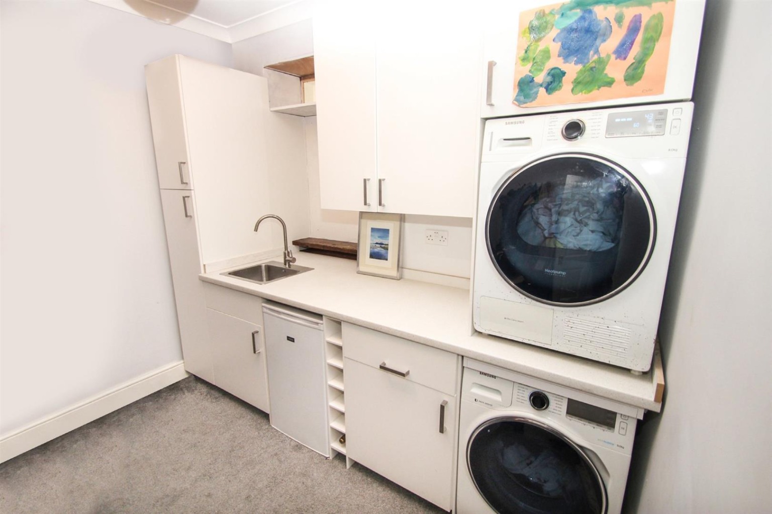 Moving back through the home, you then come to the utility room, equipped with a sink, fitted units, freezer, washing machine and a tumble dryer, plus a built-in hidden ironing board (take a look at the pictures – it's not what you might come to expect from a utility area, there's even carpet underfoot).Across the hallway, opposite the utility room, there's a cloakroom/WC, giving you added convenience during those busy mornings, or when having guests over, perhaps enjoying a summer BBQ.