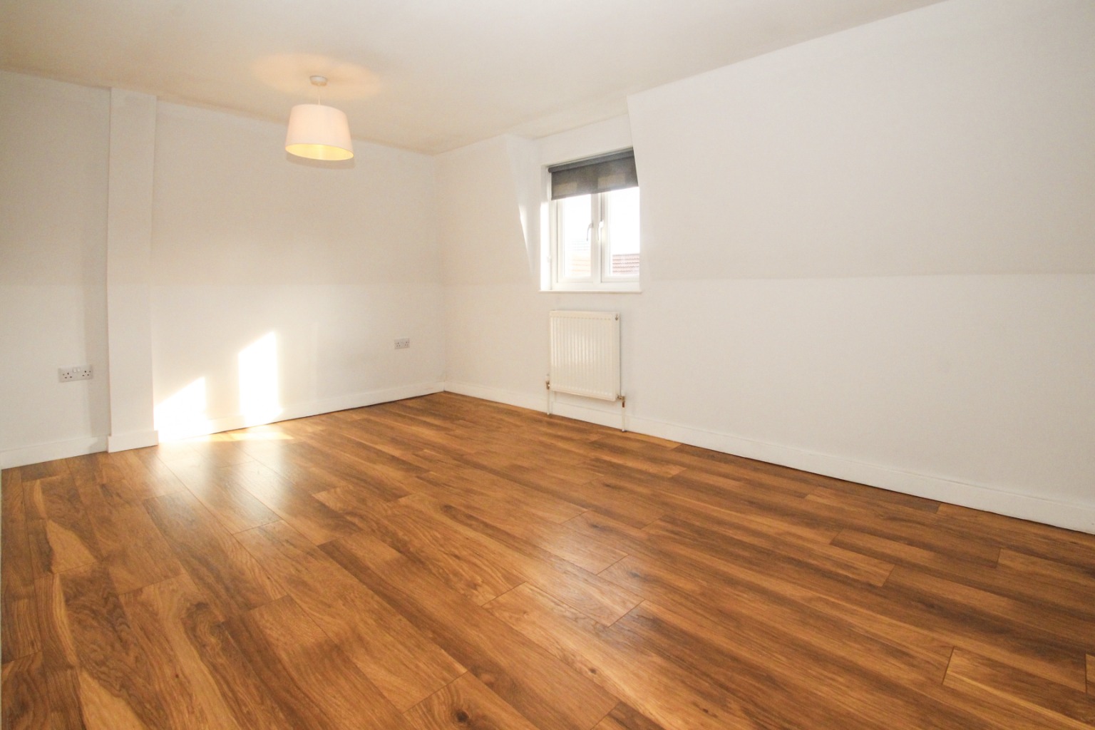 The property has been decorated using a modern colour palette with white walls and sleek laminate flooring. To the left is bedroom one, which is a great size, possibly sufficient to house a computer desk for home-working. Across the hallway is bedroom two, which is of a similar size, although this room features a walk-in wardrobe.
