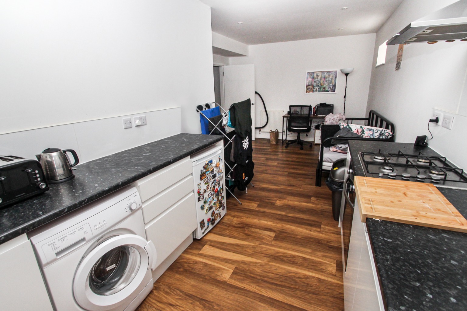 To the rear of the property is the delightful open-plan living area and fully fitted kitchen including the following white good: Oven, Gas hob, Extractor, Fridge (with small freezer section to the top), washing machine and dish washer. The property also benefits from gas central heating, double glazing and security intercom system.