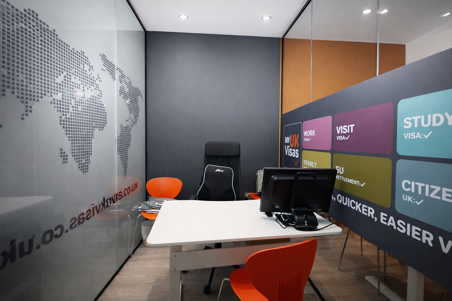 Upon entering, you are greeted by a well-appointed reception area, providing a professional and welcoming first impression for clients and visitors.