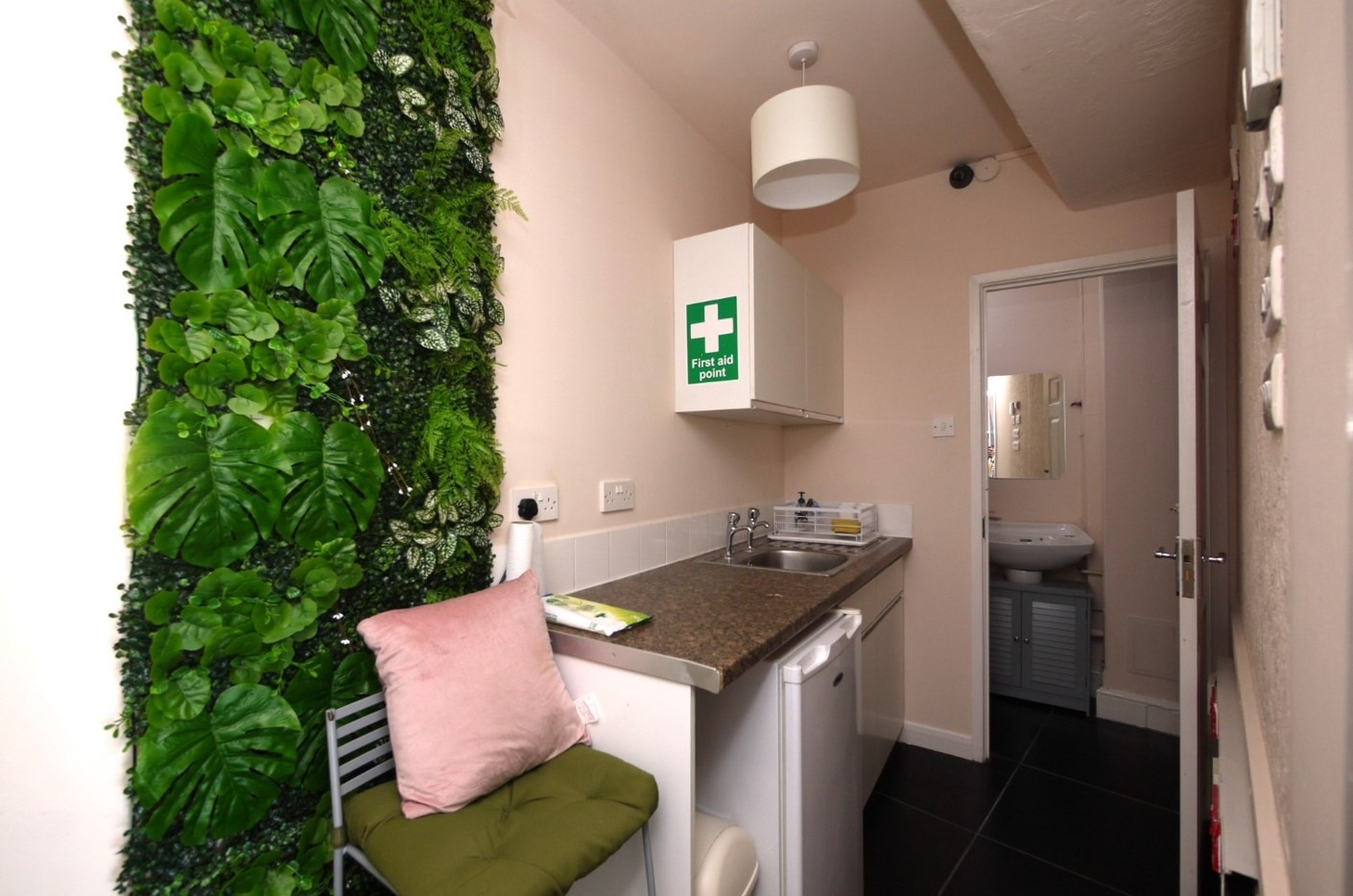 The property also boasts a conveniently located bathroom and kitchenette. These facilities are essential for creating a comfortable work environment and catering to the needs of staff and visitors alike.