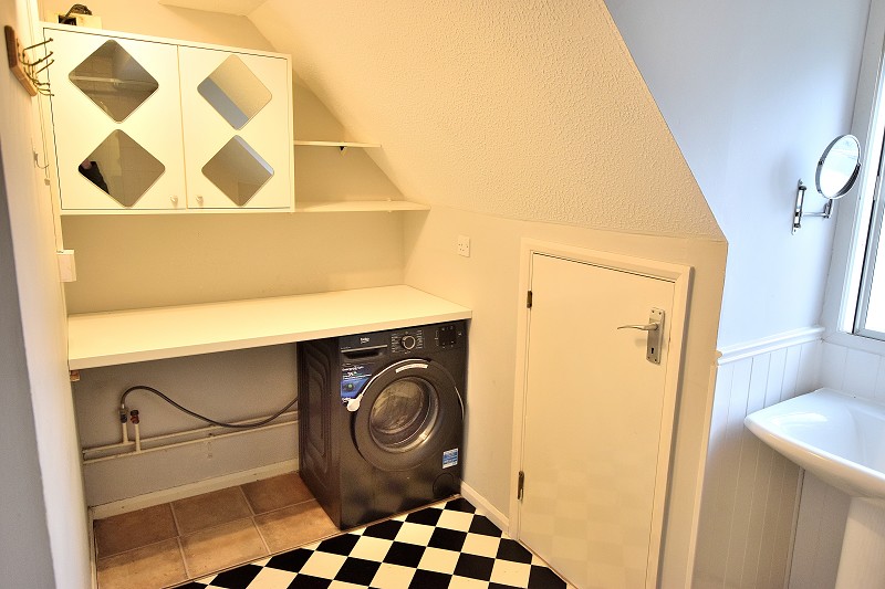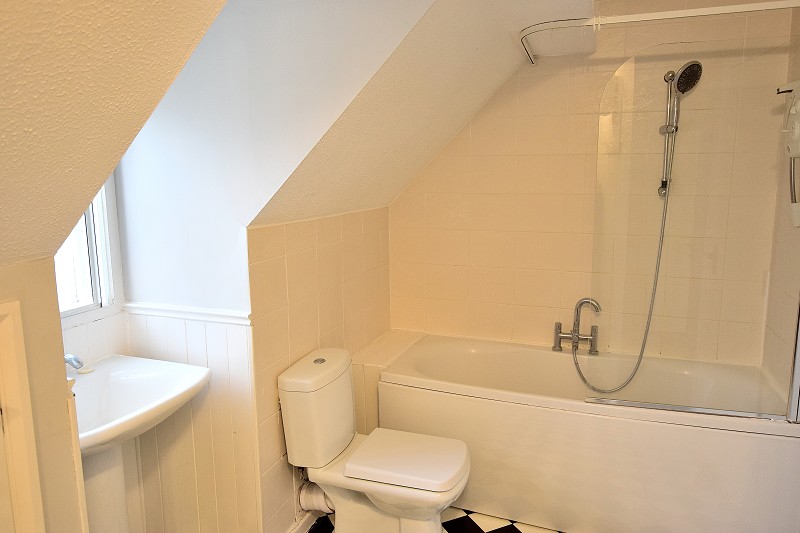 BATHROOM: Lino flooring, bath and shower, closed coupled W/C, washing machine, electric heater.