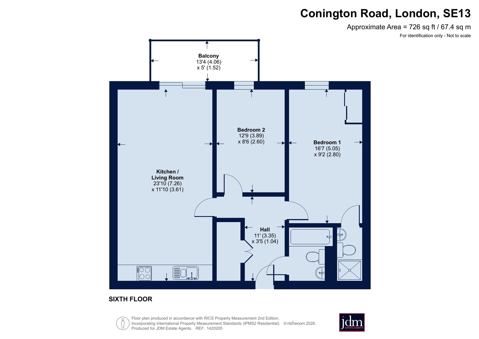 Accommodation comprises; Bright open plan reception room with floor to ceiling windows opening onto good sized balcony, kitchen with integrated appliances.