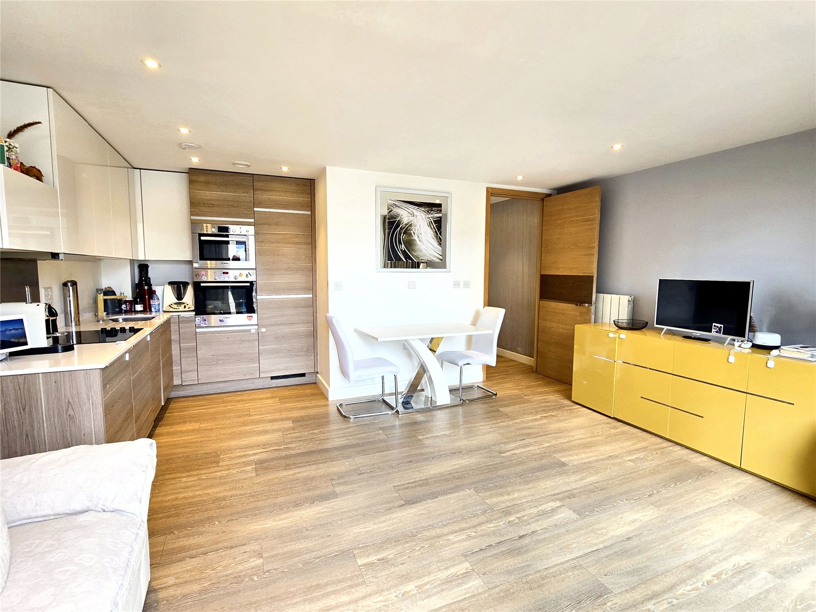 A modern 914sqft apartment with a large dock-facing balcony, evenly sized double bedrooms and a freshly redecorated inte...